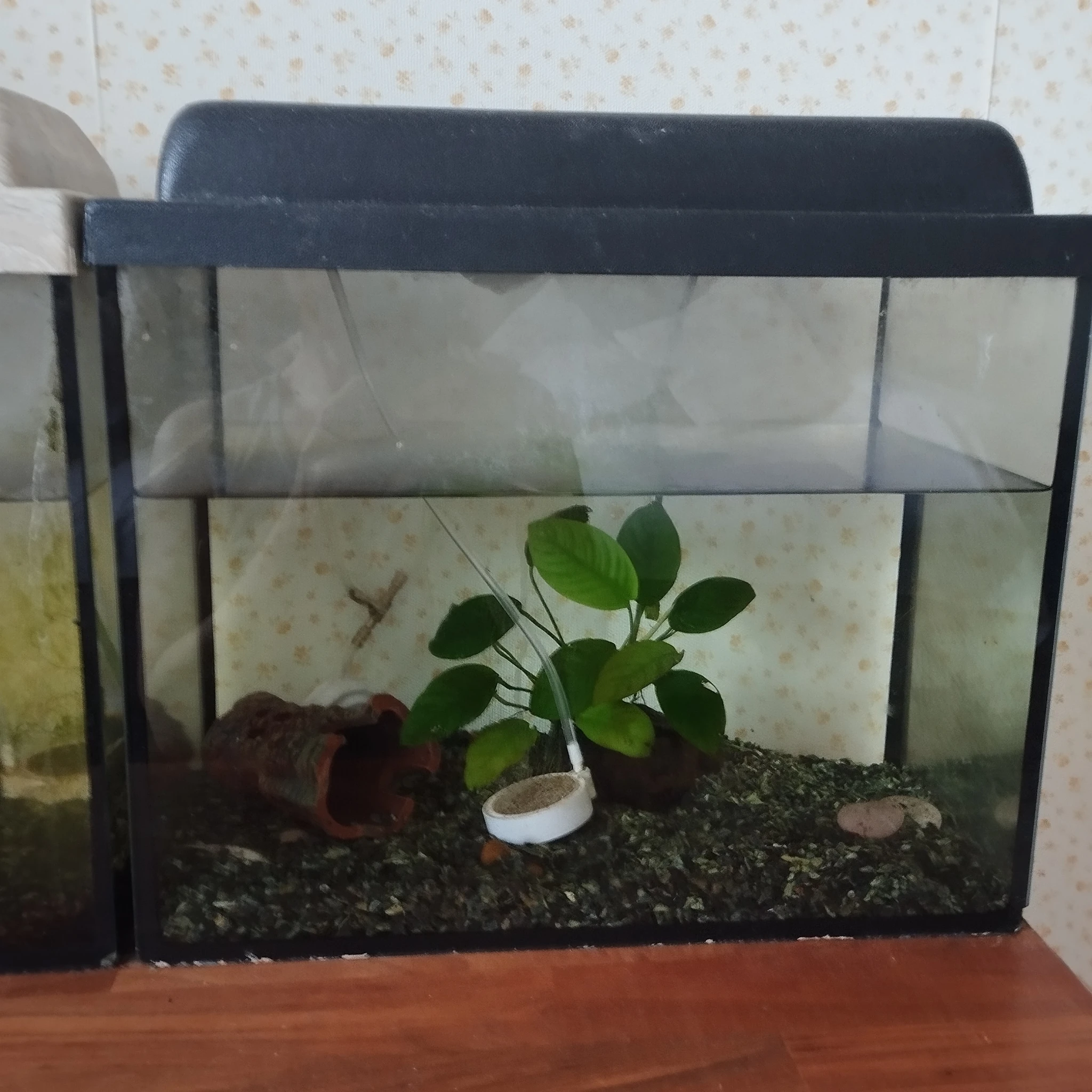 Бронь отдам два аквариума небольших , вместе с сомиком и неоном.