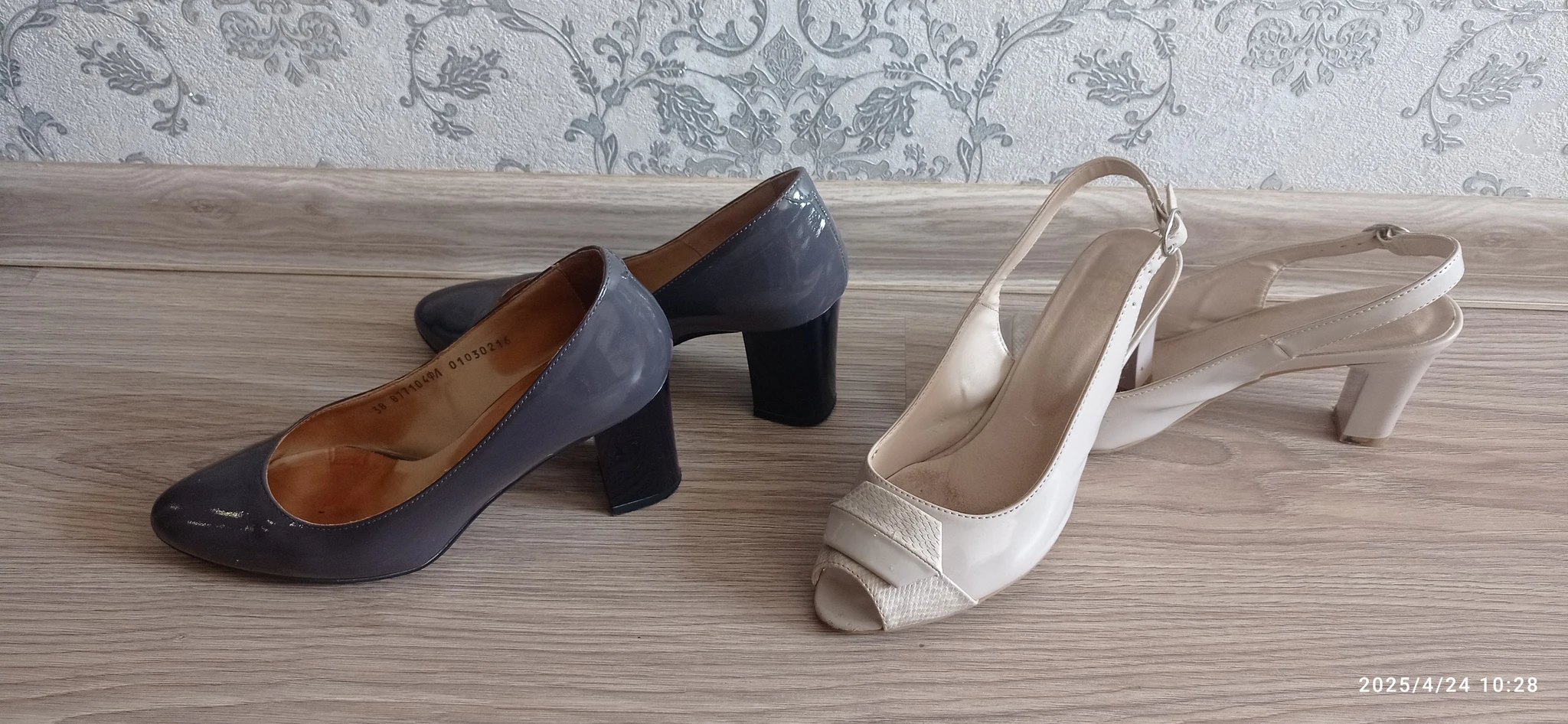 1. Босоножки и туфли серые лакированные, смотрятся красиво