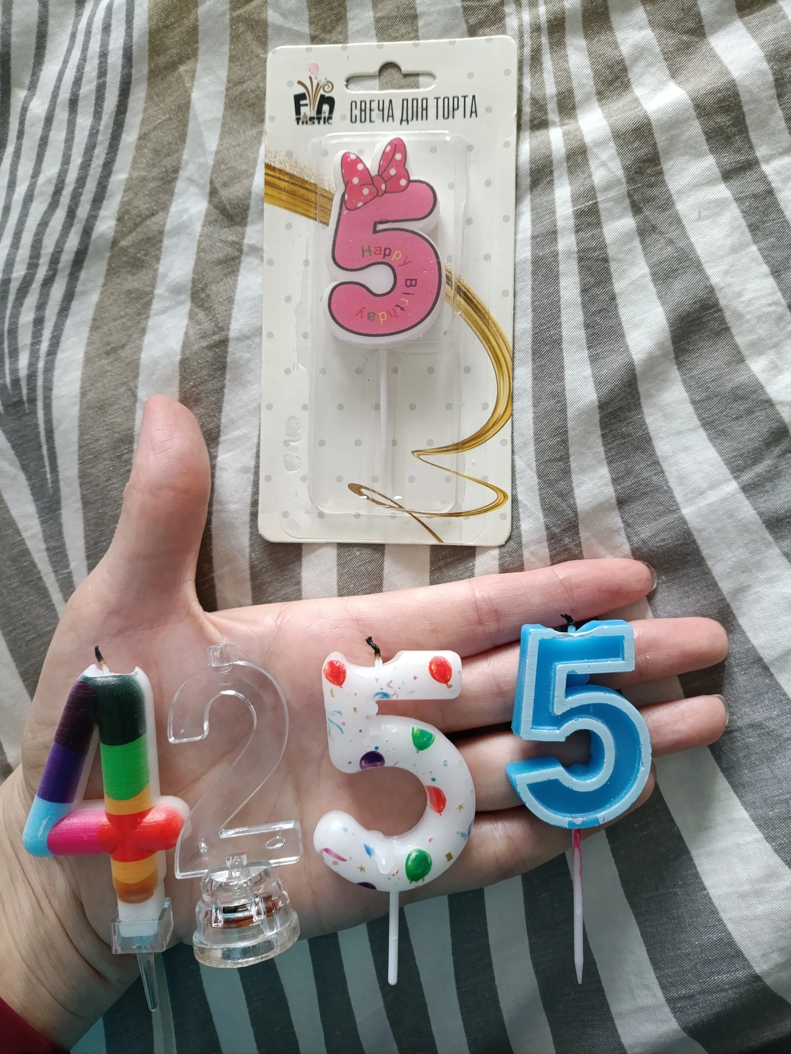 Может нужны кому-нибудь свечи для торта. Розовая "5" новая. "2" мигает и сверху ставится свечка.