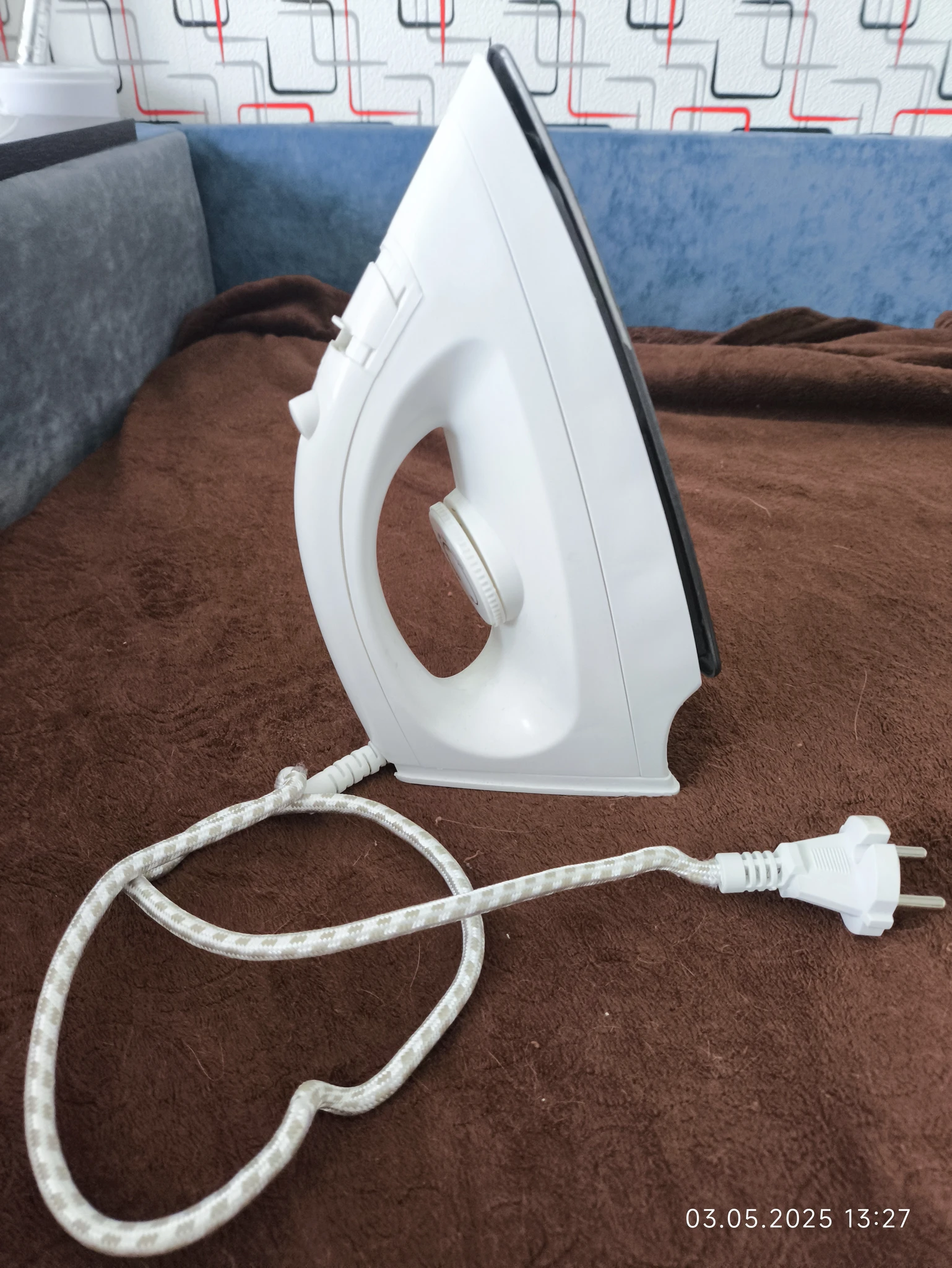 Утюг небольшой, в рабочем состоянии. Провод короткий. Нужно почистить подошву.