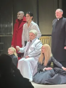 Там одна режиссерская идея мне не понятной осталась, хотя на смысл спектакля она не повлияла.