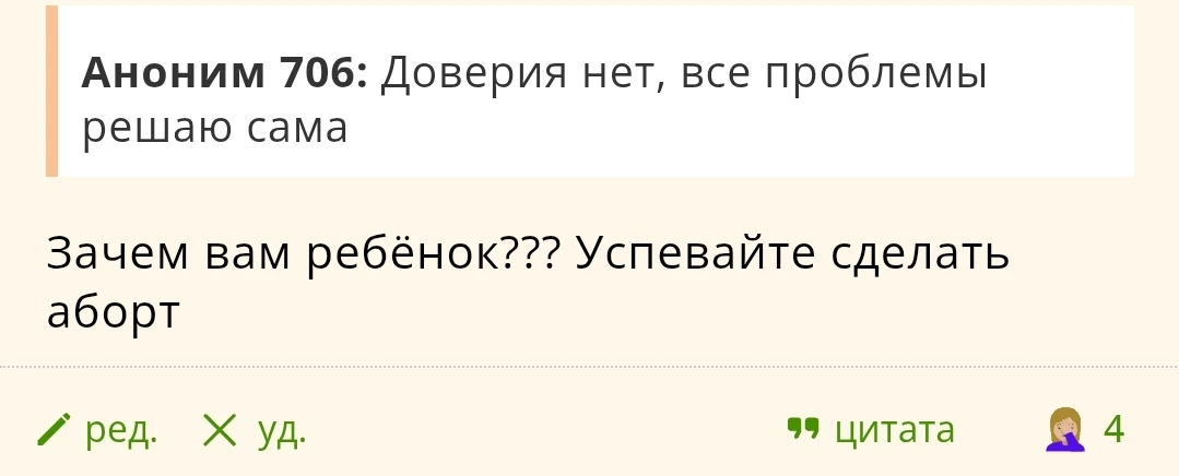 Аноним 706: Списываю свою истерию на играй гармон. Заказы есть, можно отбиться. Муж по факту никуда не денется, даже если полная жо.. будет