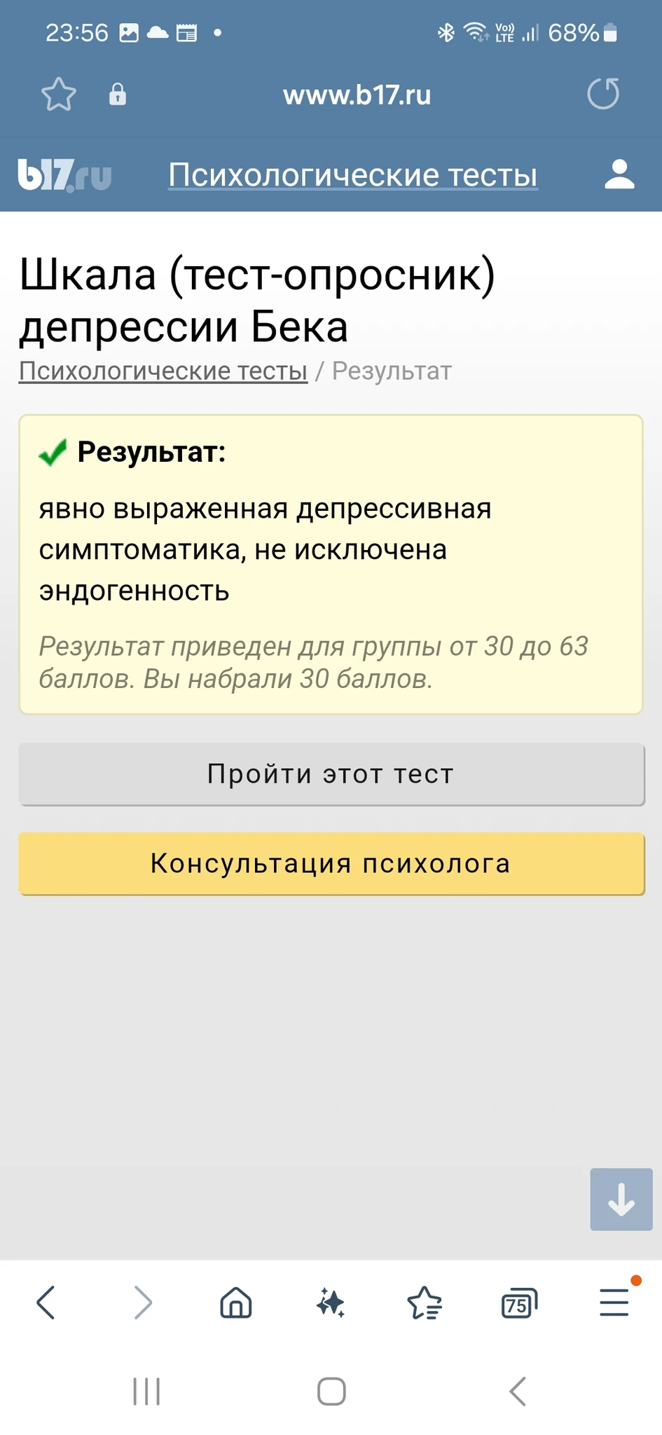 Сделала упомянутый тест Бека. С результатом не согласна, верить в него не хочу.