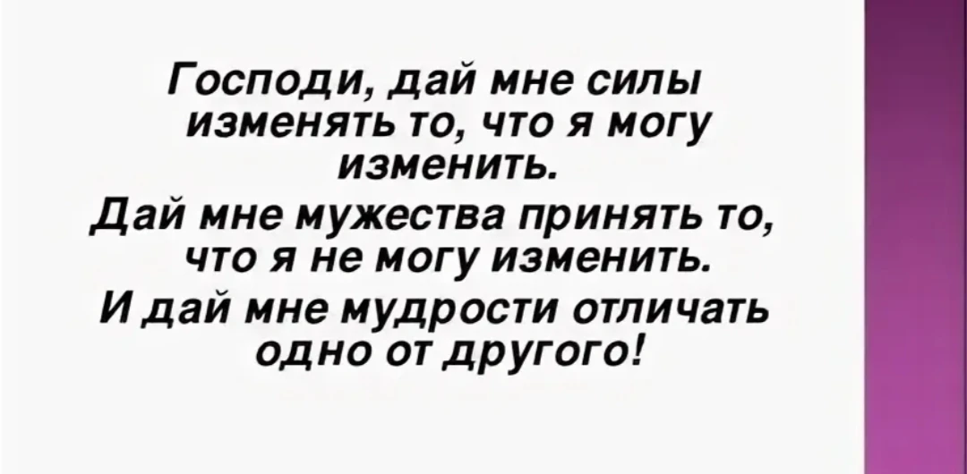 Основа психотерапии всех зависимых Молитва о душевной покое. Считаю эту молитву базой любой психотерапии.