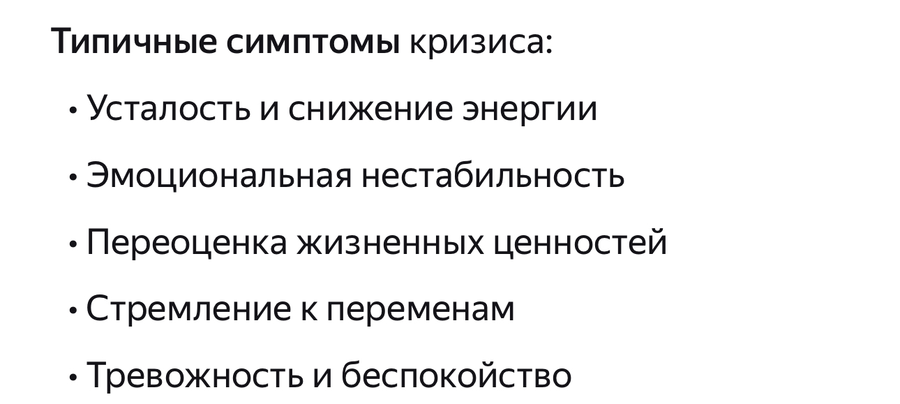 Почитайте про кризис мужчины среднего возраста, вот это он кризис. Нужно к психологу обратиться