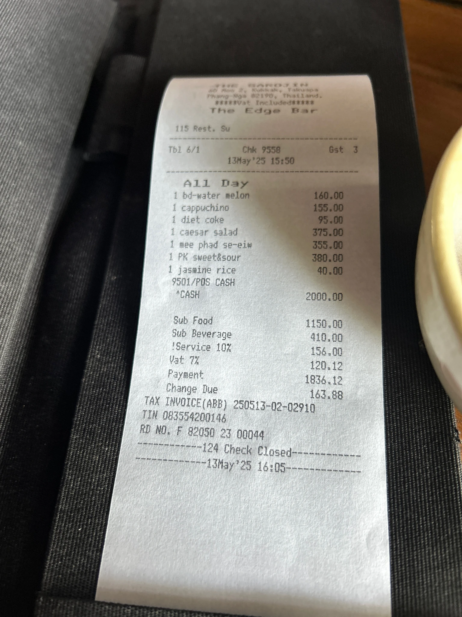 Вот чек еда за один обед.