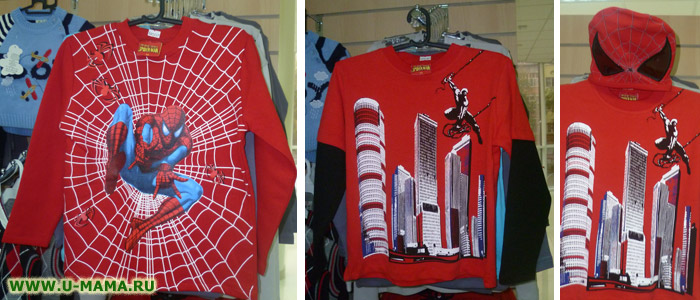 Мегахит и предел мечтаний всех мальчиков, когда-либо видевших это: нежаркие кофты «человек-паук» с капюшоном, закрывающим лицо и с прозрачными вставками-«глазами». Размеры: выборочно от 116 до 146, цена 550 руб.