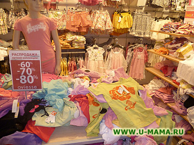 Продвигаемся далее по улице Вайнера и попадаем в торговый центр «Успенский». Здесь находится итальянский универмаг OVIESSE. Уже на входе мы ощутили приятное волнение и дрожь в членах: запахло распродажей. И точно: залы «девочковые» и «мальчуковые» до потолка завалены ворохом летней, а значит - садичной одежды с большими скидками.