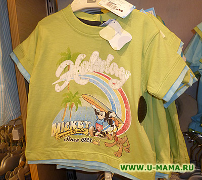 Привлекают внимание стильные футболки с «состаренными» диснеевскими сюжетами.