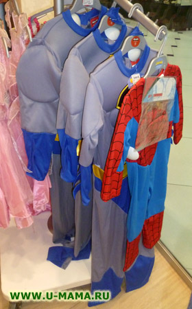 Приближаемся к «9+», справа от него отдельчик «Магазин Игрушек». Игрушки как везде. Есть карнавальные костюмы, и пока их много. Костюмы новогодние «Батик», цена 500-1800 в зависимости от размера и вычурности, от меховых зверушек до шикарных «мушкетеров». Отдельные цены: «Восточная красавица» 1180 руб., «Божья коровка» 748 руб., «Бэтмен» 924 руб., «Ангел» 787 руб.