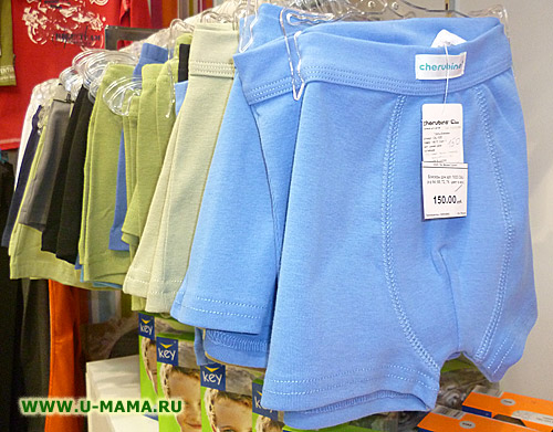 - Большой выбор трусов на мальчиков и девочек, фирма «Черубино» и другие. Девичьи по цене 80-100, для мальчиков «боксеры» чуть дороже.