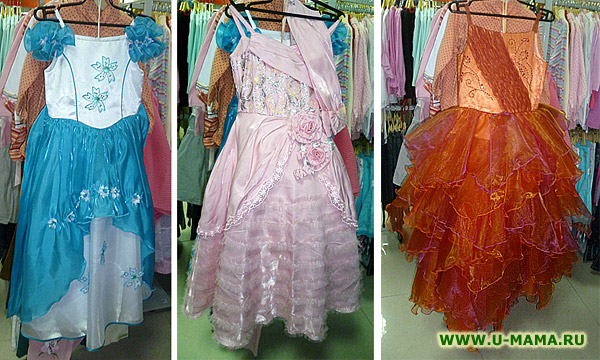 - Платья праздничные, шикарные. Фирмы: «Милашка Сьюзи», «ЛоТо». Размеры: от года до 14 лет. Цены разные, зависят от размера, фирмы и новизны коллекции. Есть платья по 1200 руб., но в основном цены 3-4-4,5 руб. Выбор очень большой!