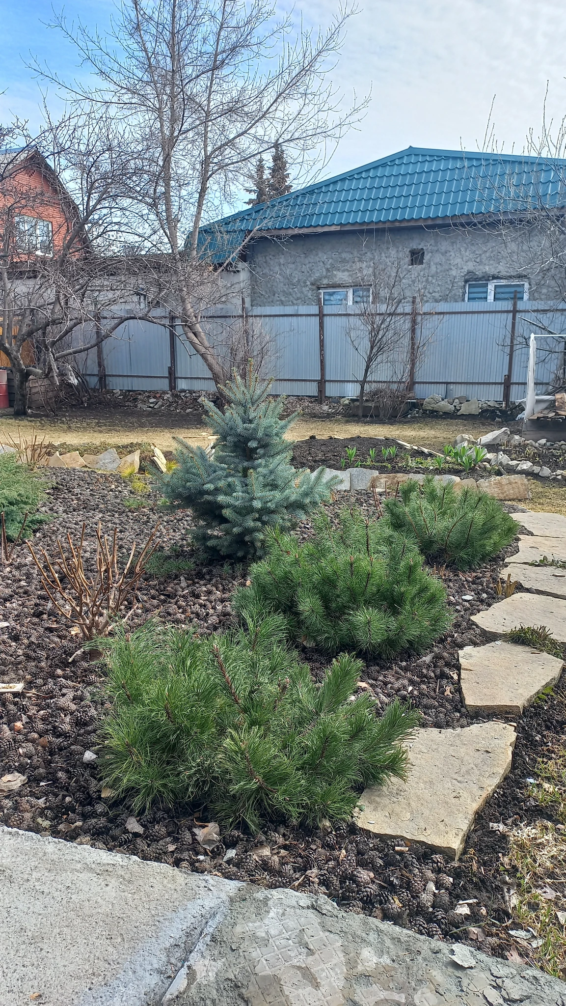 Мульча из шишек классная. Не видела раньше такого.