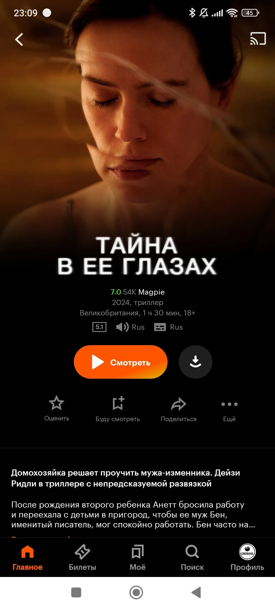 Вы о фильме "Тайна в её глазах"? Тоже посмотрела по рекомендации в теме о триллерах. Всё ждала, когда уже будет страшно) Фильм с вялотекущим сюжетом, но зато поучительный для мужчин, которые начинают скучать в браке. Так что если смотреть, то вместе с мужьями)))