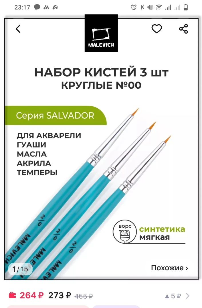 Каty7788: не могу подобрать тонкие кисти. Заказала ультратонкие, но они длинные и мягкие (для меня, художник я тот ещё) не могу прорисовать мелкие детали, обрезаю для жёсткости