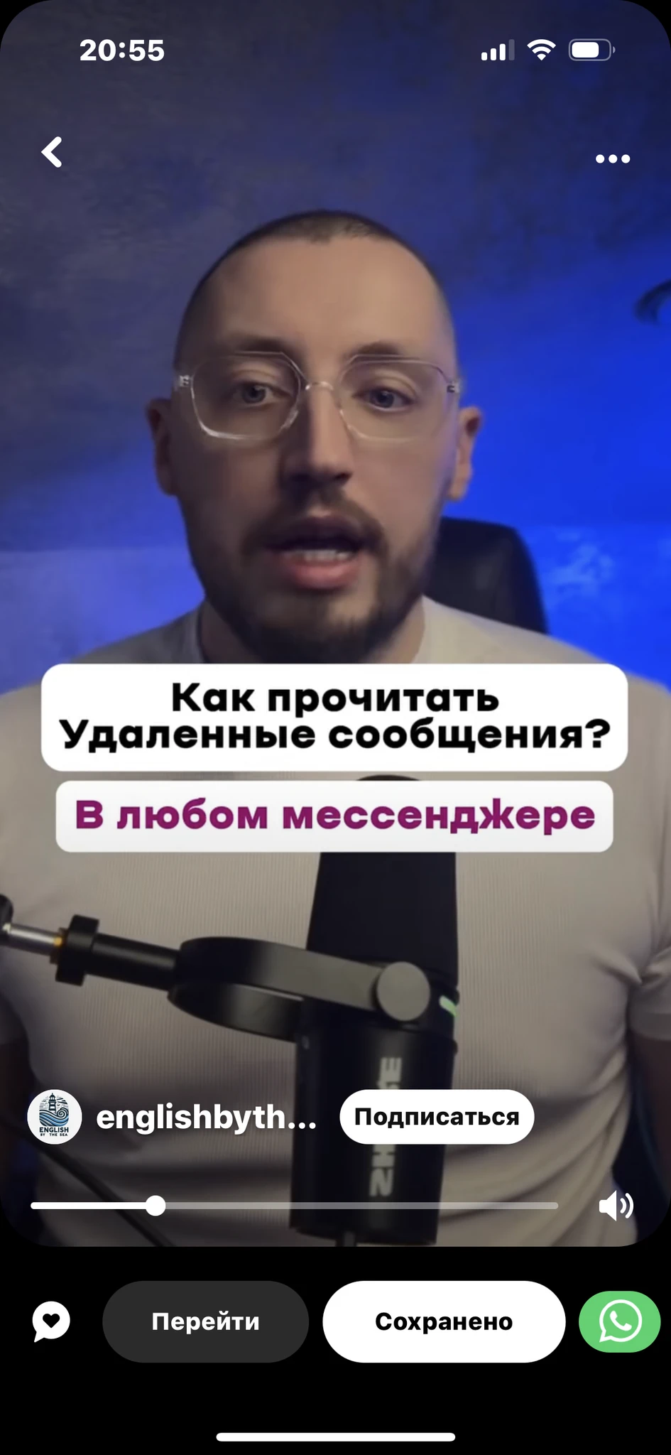 Собеседник удалил сообщение в ватсап. Не успела прочитать. Айфон