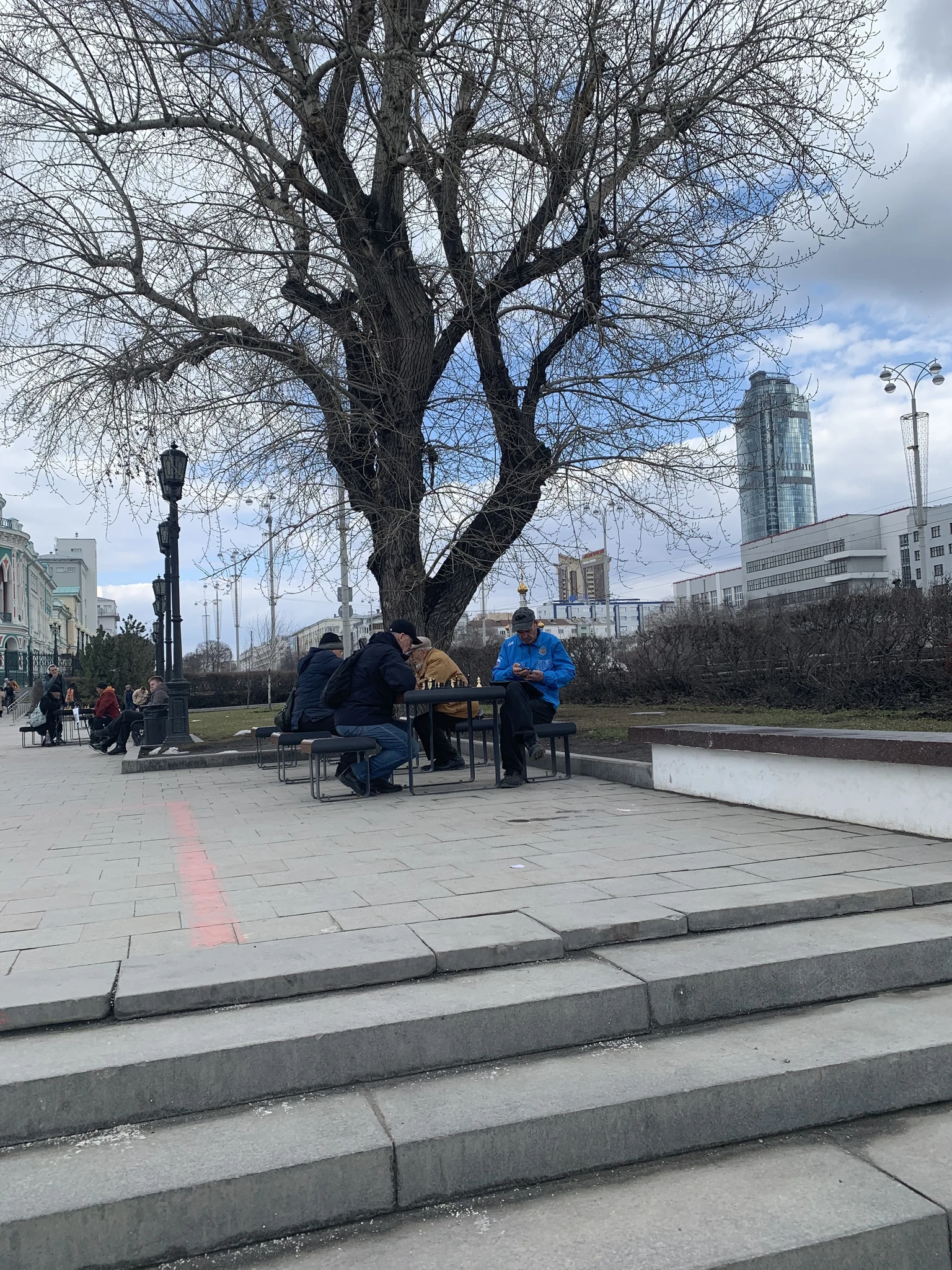 И шахматисты из тех же времён, только сейчас для них оборудовали столы, это здорово!