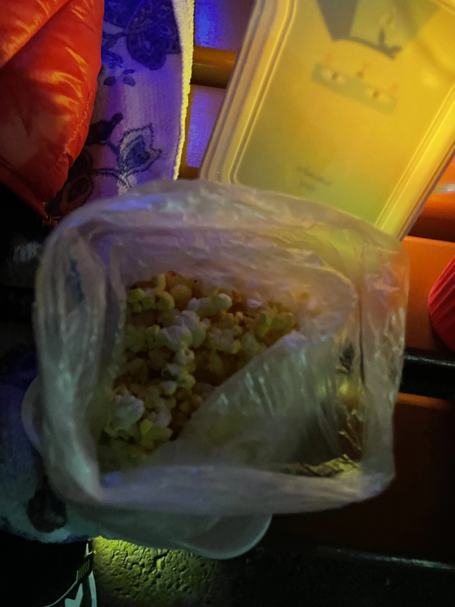 Мы сидели пили чай , ели попкорн И болтали. Он хоть