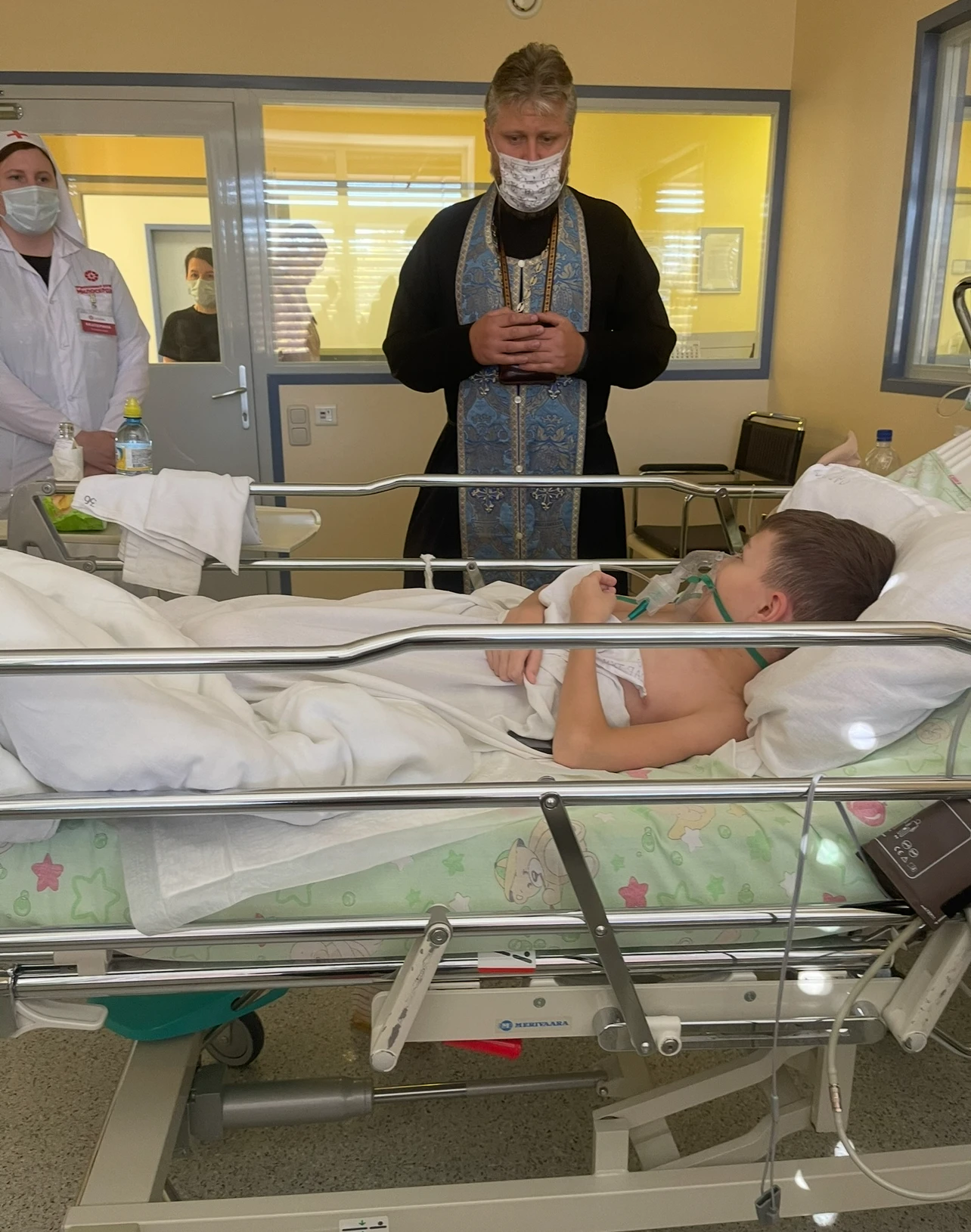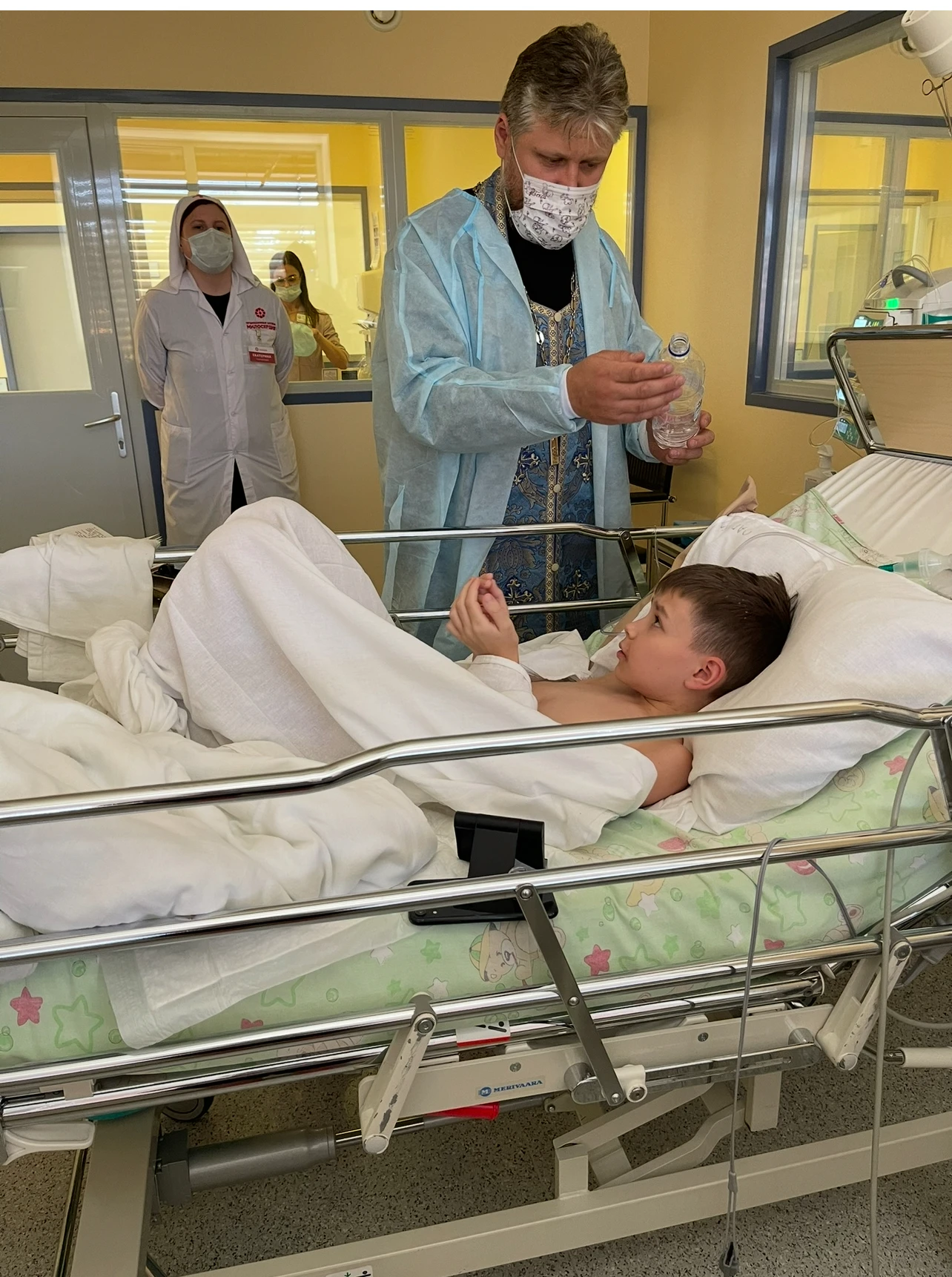 На обратном пути мы встретили батюшку который крестил Марка в реанимации в самом начале .