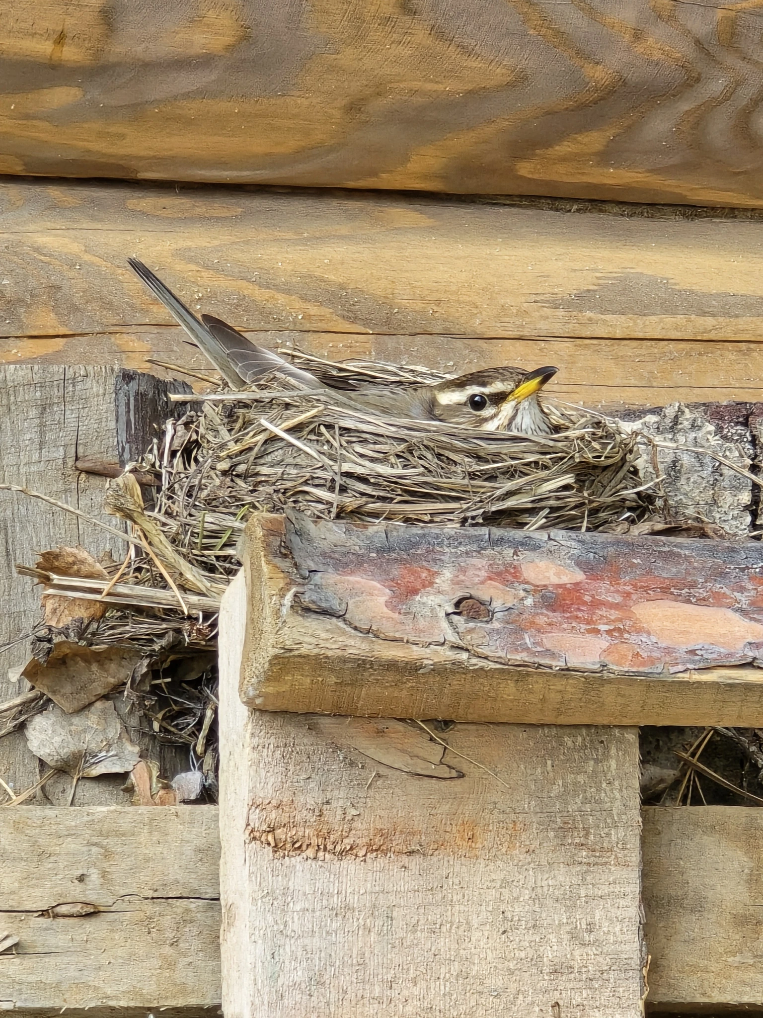 Знаю, что Марк больше по кошкам, но не могу не поделиться. На даче дрозды свили гнездо снесли 5 яиц и вот сидят, потомство охраняют