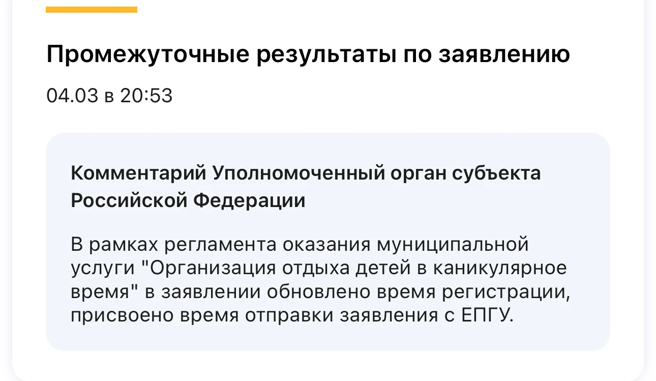 Iren And, также по 2 волне подавала в Буревестник, было сообщение о комплектовании путевки, а квитанция не приходила. Я сходила вечером в МФЦ (ТРК Комсомолл), работник МФЦ тоже квитанцию не видела и отправила меня домой ждать. Через 5 минут перезвонила, говорит, вы же недалеко ушли, подойдите. В общем Сотрудник МФЦ нажала на кнопку подтвердить, и ей вышла моя квитанция, но ей пришлось заново отсканировать мой паспорт и Свидетельство рождения ребенка. Квитанцию мне сразу распечатали, я ее через Сберонлайн оплатила, я с экрана телефона показала факт оплаты, чек оплаты я ей не высылала и не печатала. И специалист МФЦ мне выдала выписку из реестра путевок.