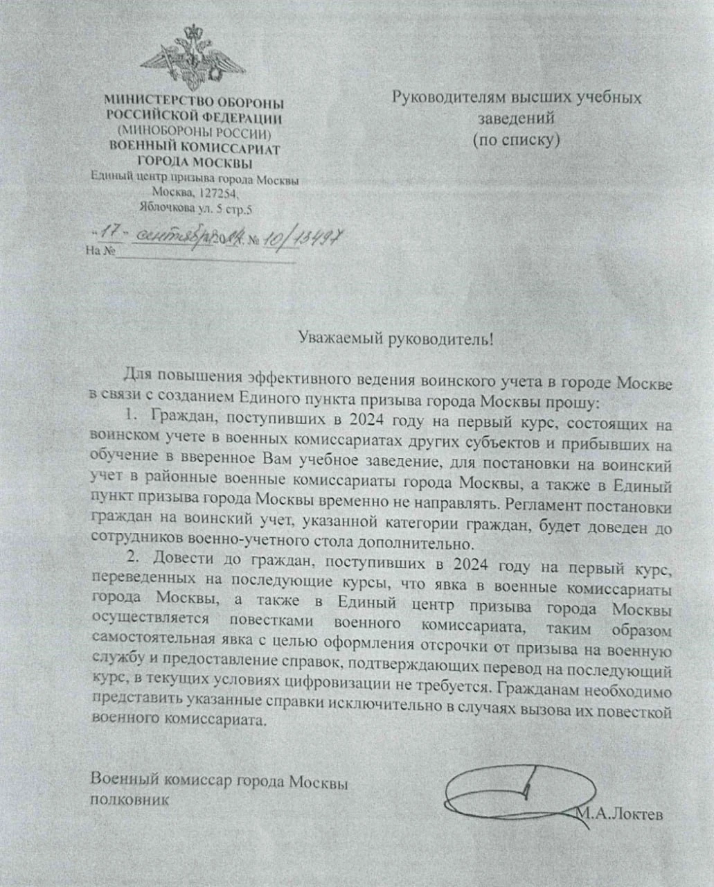 И в вузе получили это (надо сказать что с текущего учебного года отсрочки стали автоматом приходить на госуслуги и даже не всем лично ногами надо идти в военкомат) т е система сама работает электронно, идёт электронный обмен данными (т е справка для отсрочки и что юноша поступил на обучение уходит в соответсвующие органы сама)