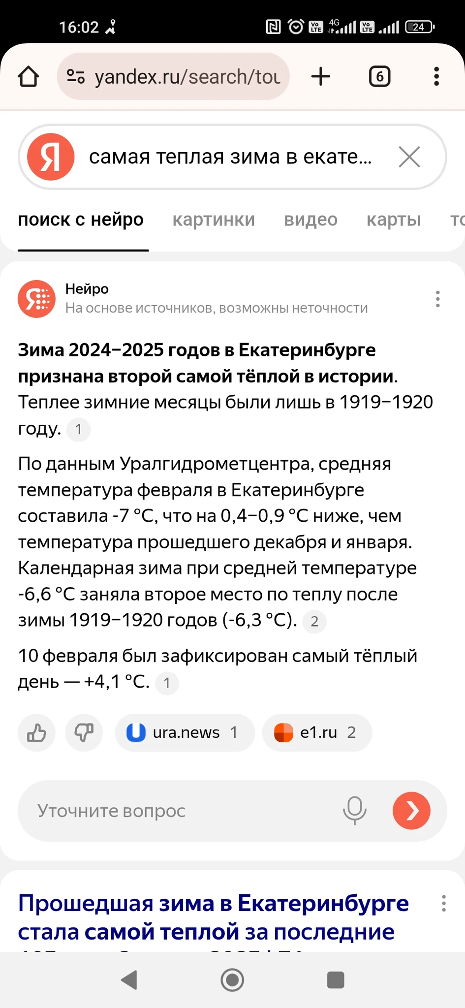 Я уже нить разговора потеряла, о чем Вы? То про холодную зиму оговорили, то про теплую начали говорить. Вы эти архивы то откуда вытаскиваете? Зима где? Я Вам скажу, что по всем регионам она разная Да и никто не утверждает, что прям каждая зима была - 42 все три месяца. Но то, что раньше зимы были суровее на Урале, это все скажут. Сейчас последние года, зимы стали теплее. Местные в Питере тоже говорят, что у них климат сильно поменялся, в сравнении с 80 - ми годами.
