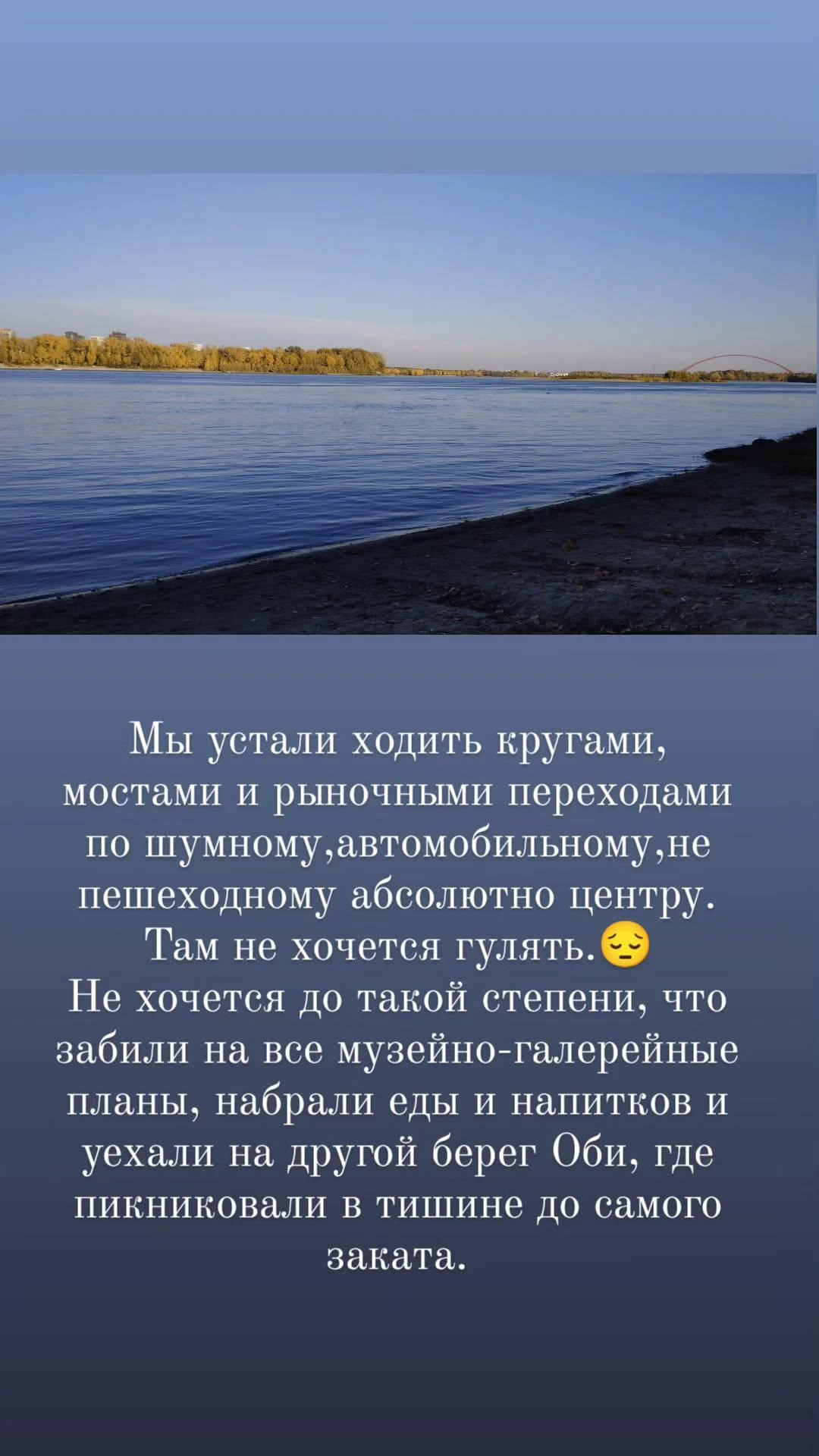 Спасибо! Да, Обь красивая на фото вашем, но ехать в Новосибирск полностью как-то расхотелось)