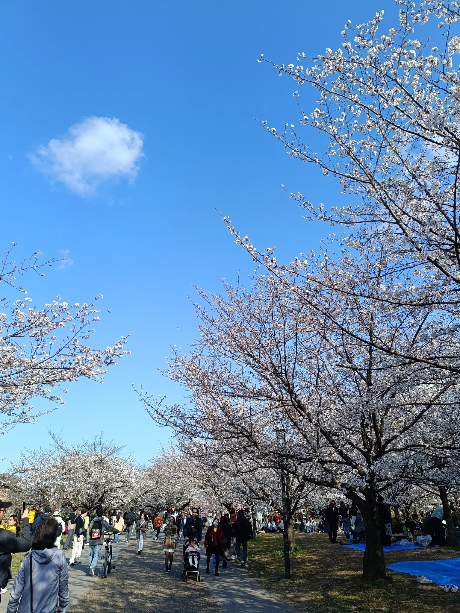 вот интересно. у нас так же вдоль проспектов цветут декоративные яблони, еще ранетки всякие и плодовые яблони как невесты стоят - не хуже. а тут прям культ сделали - сакура. созерцание)
