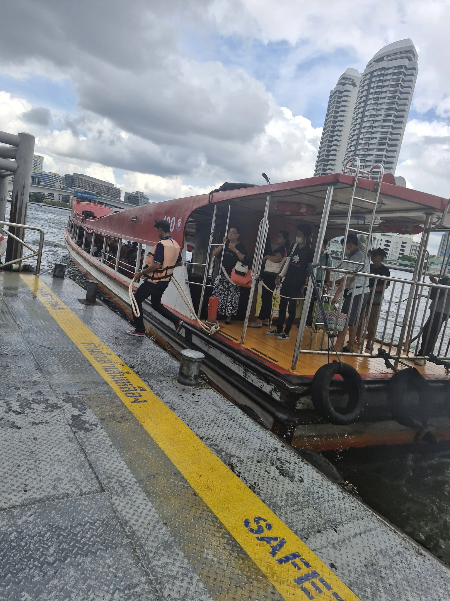 Утром добралась-таки до большой реки Чао Прайя. Раньше мы по ней катались, нанимая индивидуальную лодку, но все то же самое можно увидеть просто сев на общественный транспорт. "Лодки с оранжевым флагом" - такое официальное название основного маршрута, который собирает все главные достопримечательности, расположенные у реки.