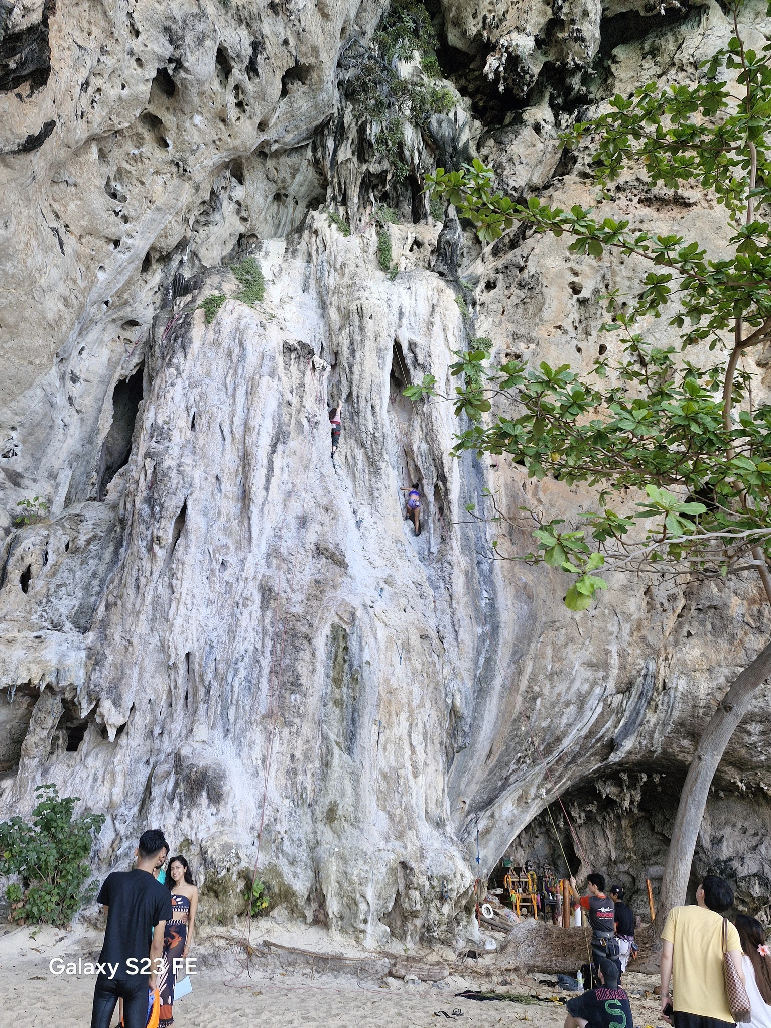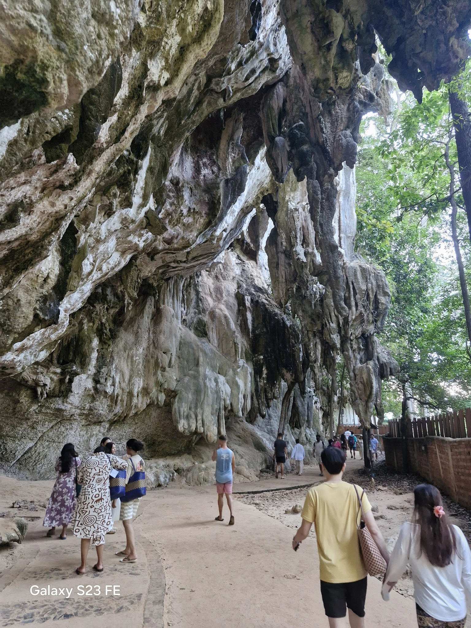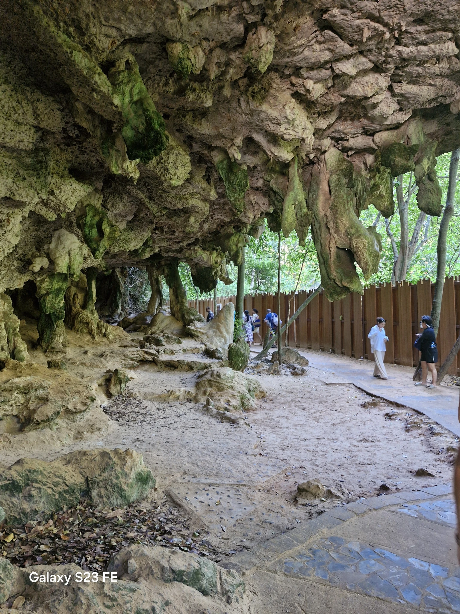 Что именно называется пещерой, я так и не поняла, но проход к пляжу идёт по такой каменной полугалерее, которая иногда нависает над дорожкой вполне внушительными сводами. На самом пляже два углубления, которые, возможно, и есть пещера. Внутри стоят тайские алтари с подношениями. Видимо, святое место. Только несёт от него амиаком очень так бездуховно.