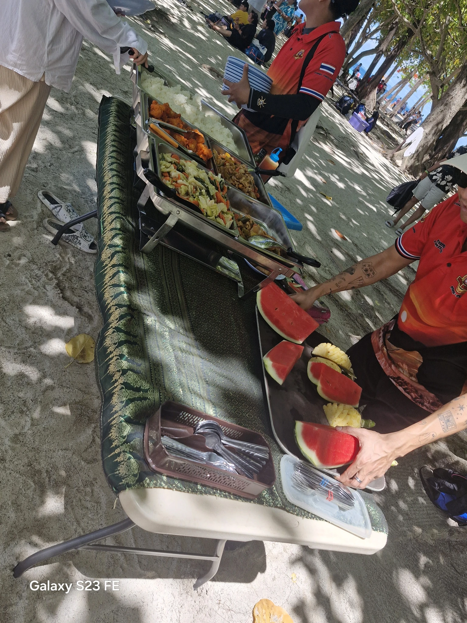 За пляжем сразу начинается роща. Светлая. Теннисная и очень зелёная. Тут бы циновку поселить да вздремнуть пару часиков в самую жару, но нет. На каждом свободном пятачке лодочные группы организуют свои пикники. А потом ищут место, где это всё съесть.