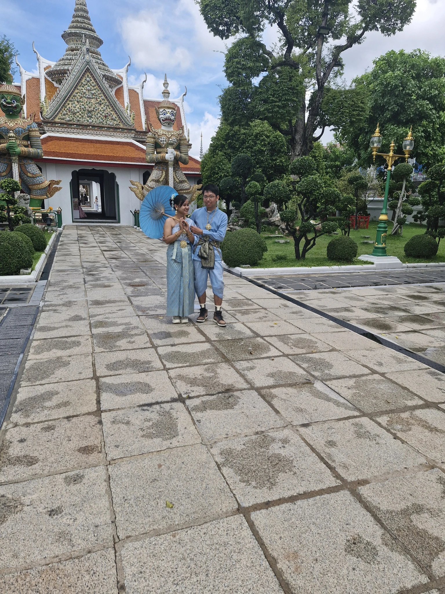 На территории храма появилось новое развлечение. Можно взять исторический тайский костюм и, наняв фотографа, устроить себе фотосессию. Костюмы парные. Так что можно и супруга привлечь. Пусть не стоит в стороне от прекрасного!