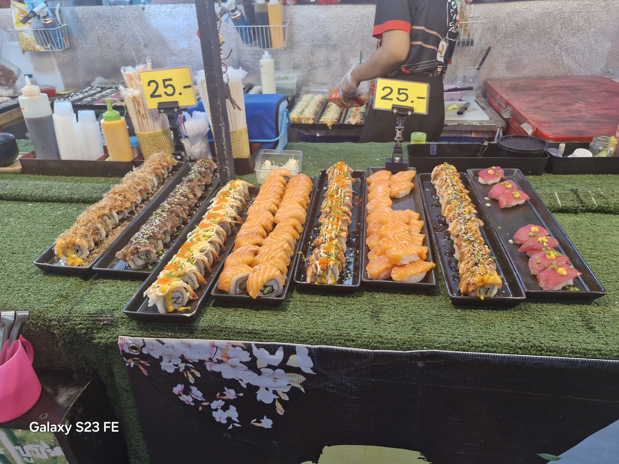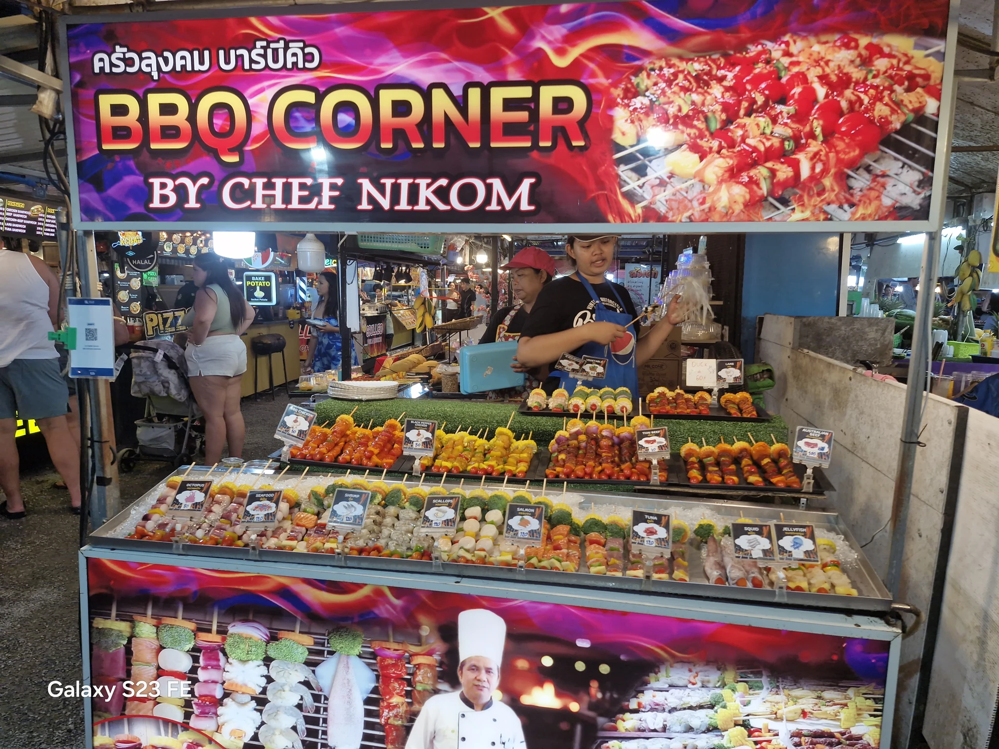 На открытой площади штук пятьдесят кулинарных станций и представлена вся кухня Таиланда, включая заимствования. Цены высокие. Порции маленькие. Посуда картонная и пластиковая. Как бы вообще меня здесь быть не должно. Но и мне не чужд стадный инстинкт. Тоже отметилась. Еда, кстати, среднего качества.