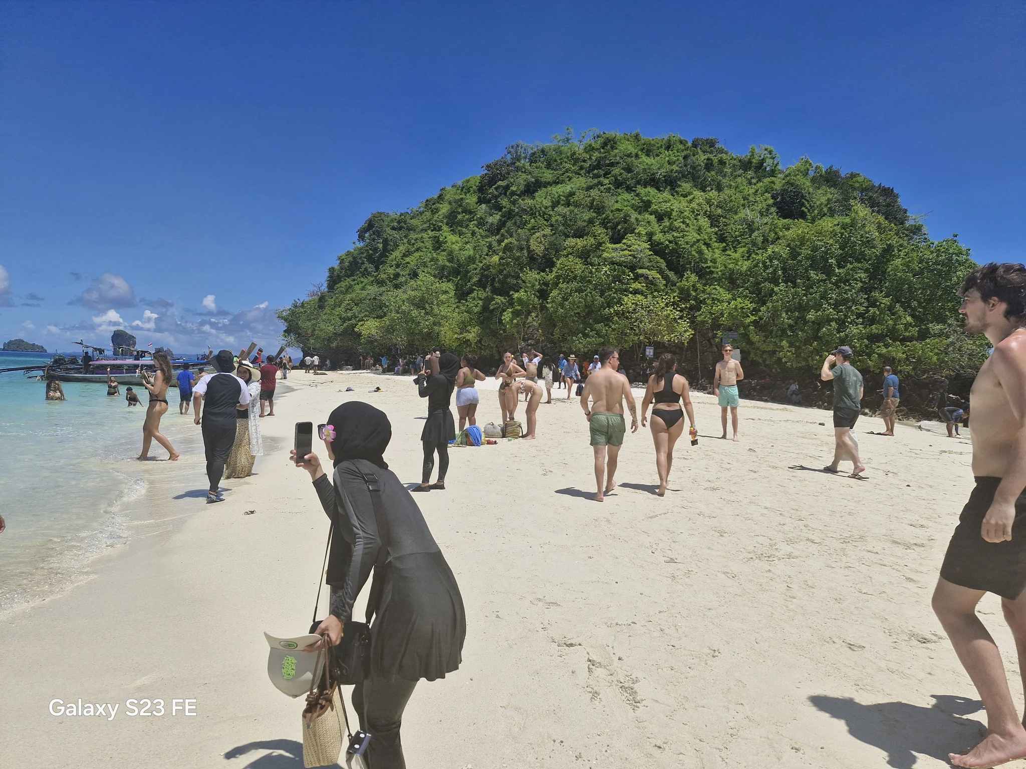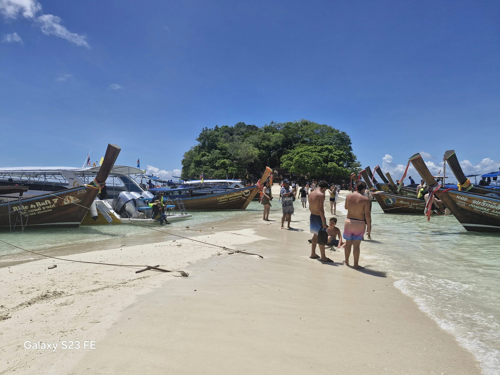 На второй локации началось совсем уж безобразие. Ровно те же лодки мигрировали сюда. Места на косе совсем мало, остался только проход между лодками. Тени нет, в море народу как у нас в Анапе в августе. По самой косе вечное движение, так что хороших фото не сделать.