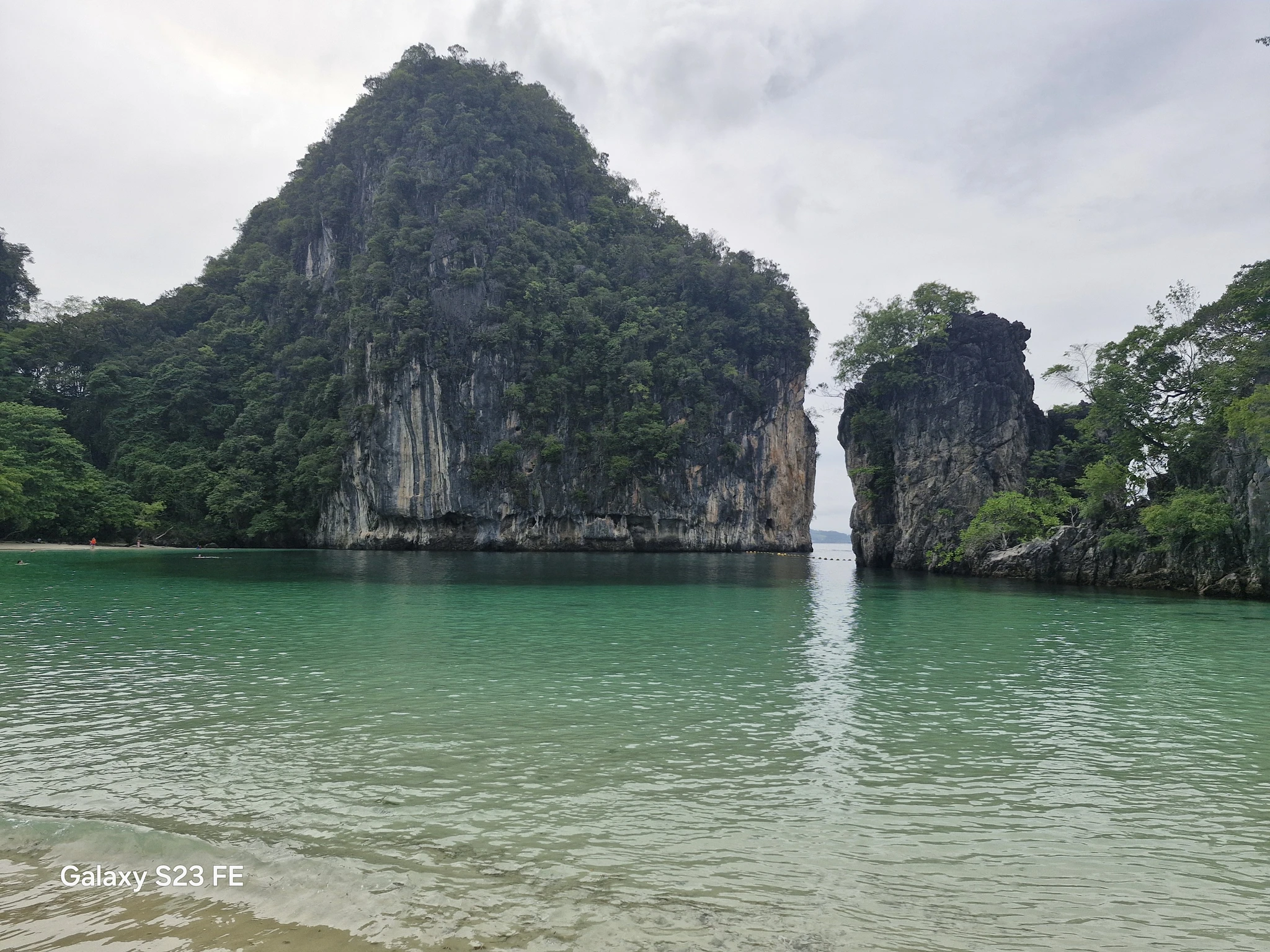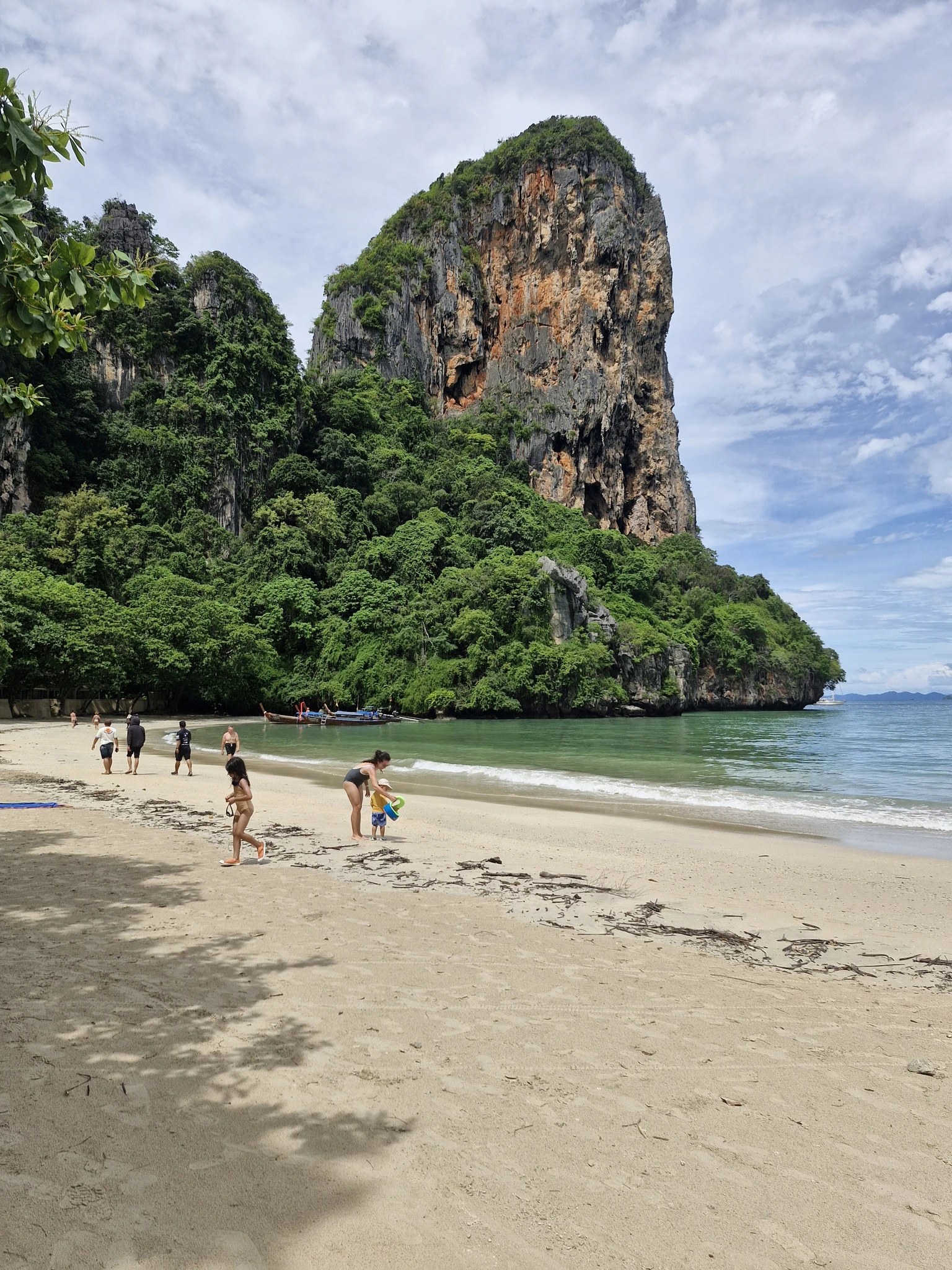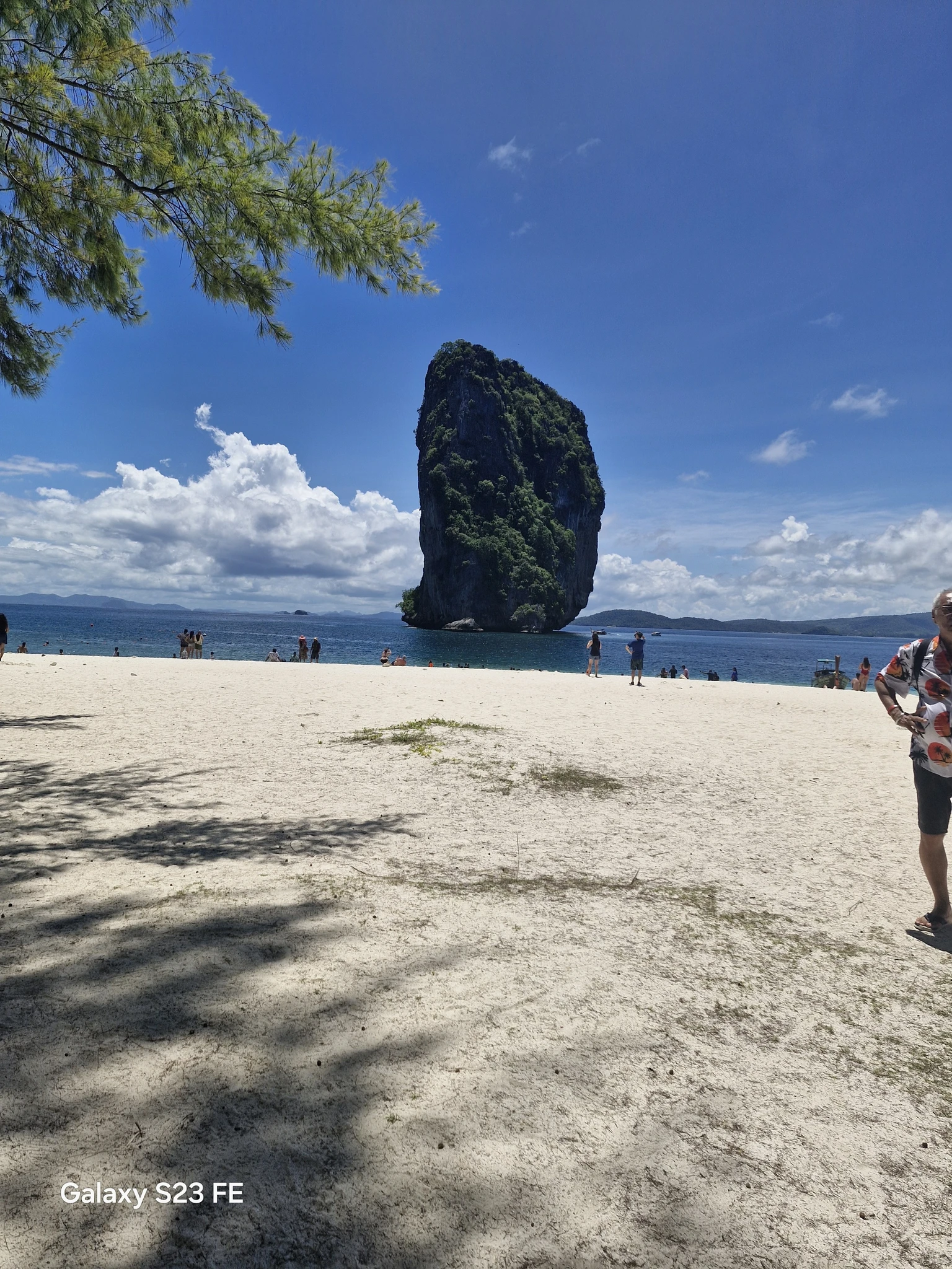 Место и правда классное! Широкий пляж с белым песком. Прямо напротив как дополнительное украшение ещё один остров в виде большого пальца из воды торчит. Кто был на Пхи-Пхи, видел такой посреди их бухты. Как сказал наш гид их палец не хуже.