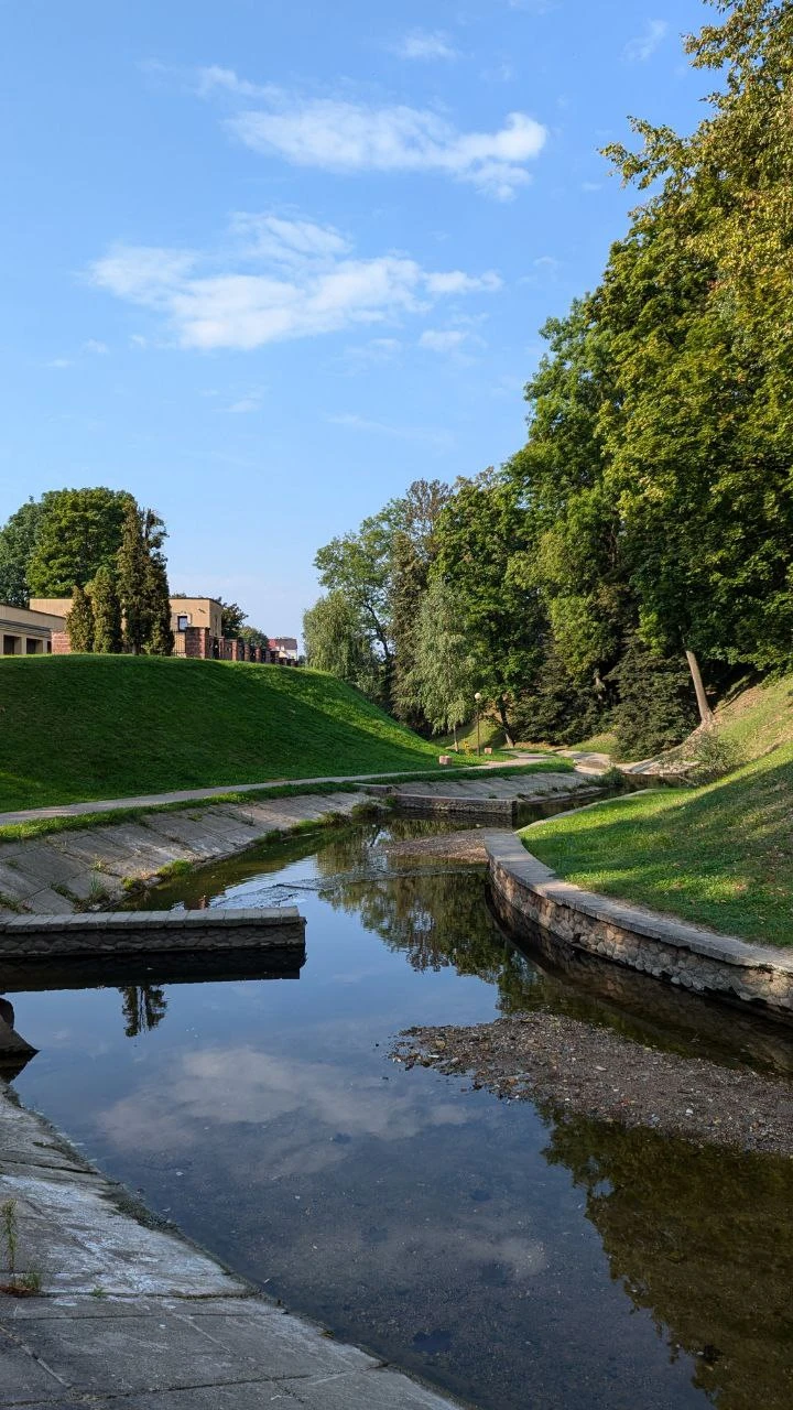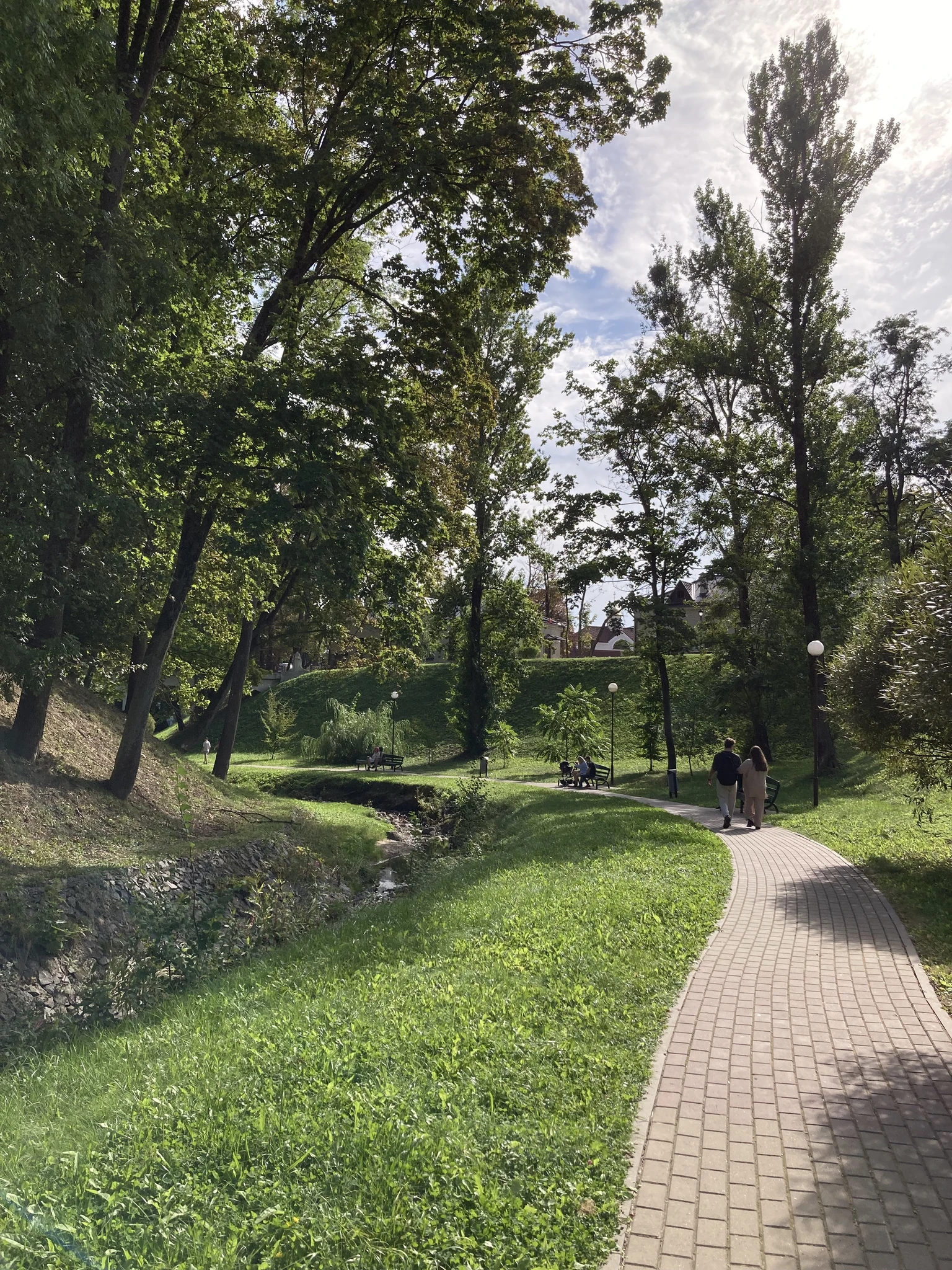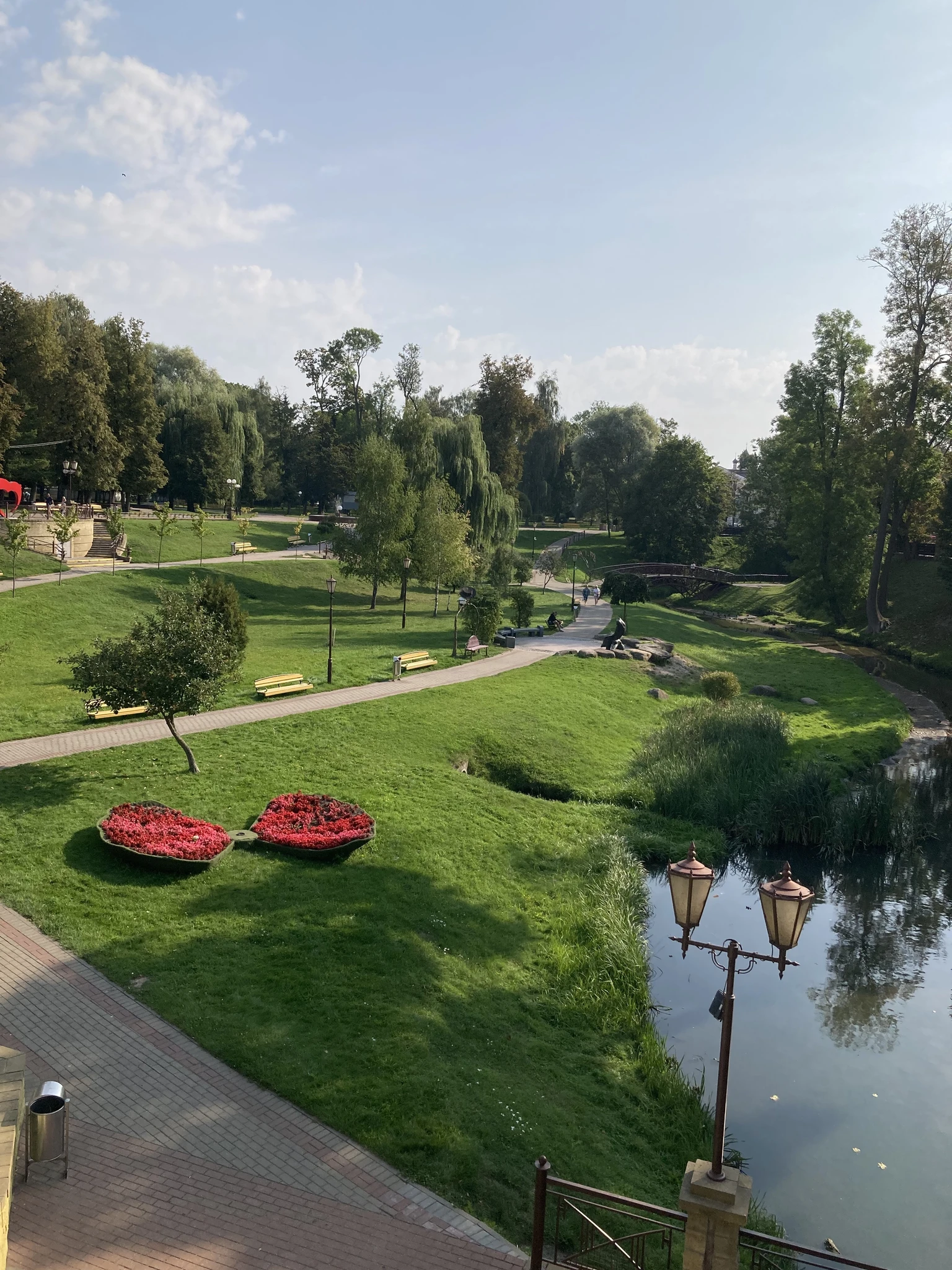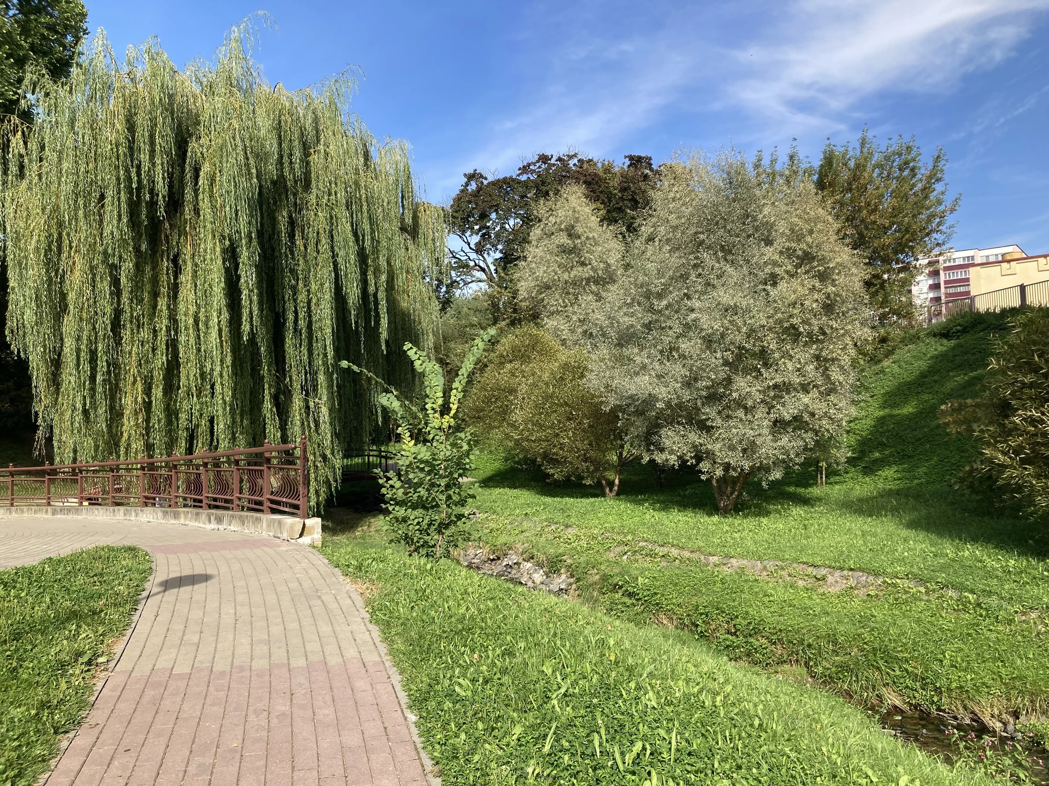 Там есть детские аттракционы и колесо обозрения. Эта локация парка показалось мне совсем небольшой, но оказалось можно пойти гулять в другую часть, отделенную мостом, в долину речки Гродничанки.