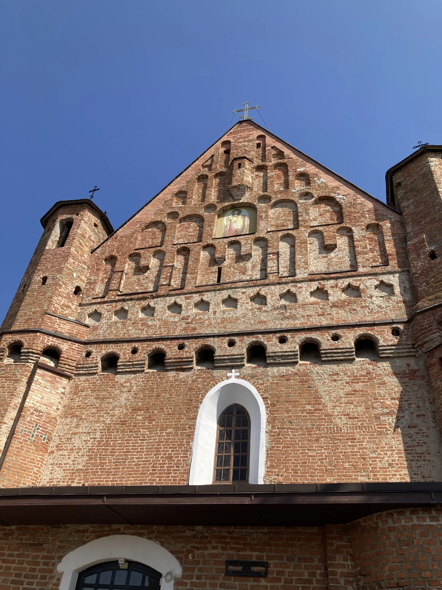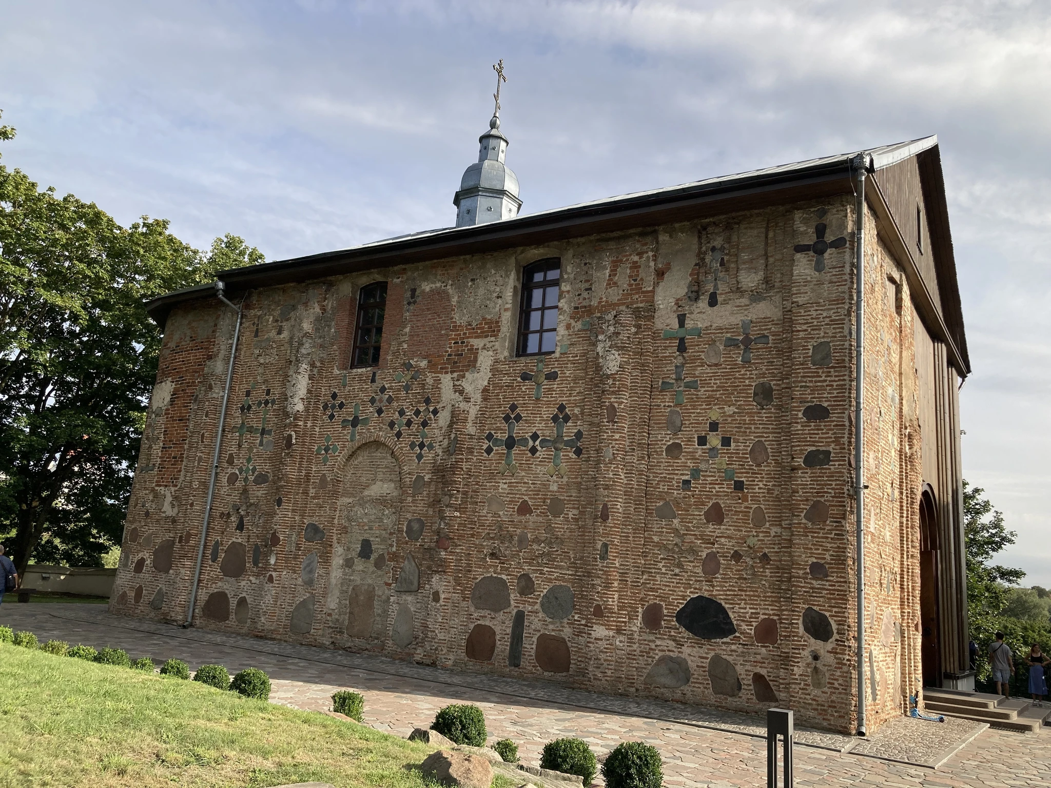 Церковь стоит на высоком берегу реки Неман и со смотровой площадки открывается шикарная панорама на Старый замок, реку, мосты и зеленые просторы на противоположном берегу.