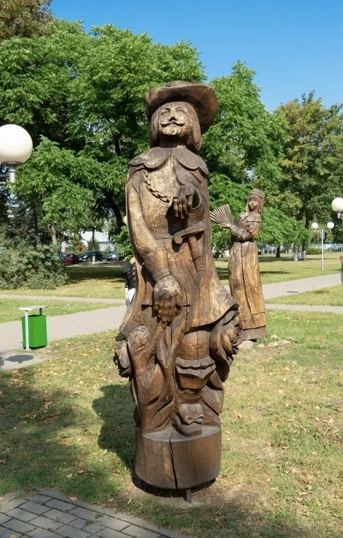 Почитав историческую справку выяснили, что скульптурная композиция отсылает к событию предоставления Ружанам Магдебургского права в 1637 году.