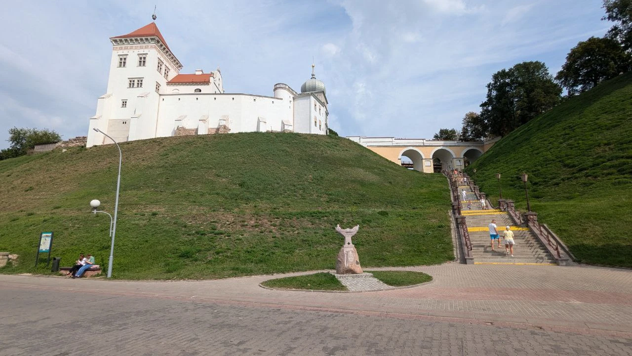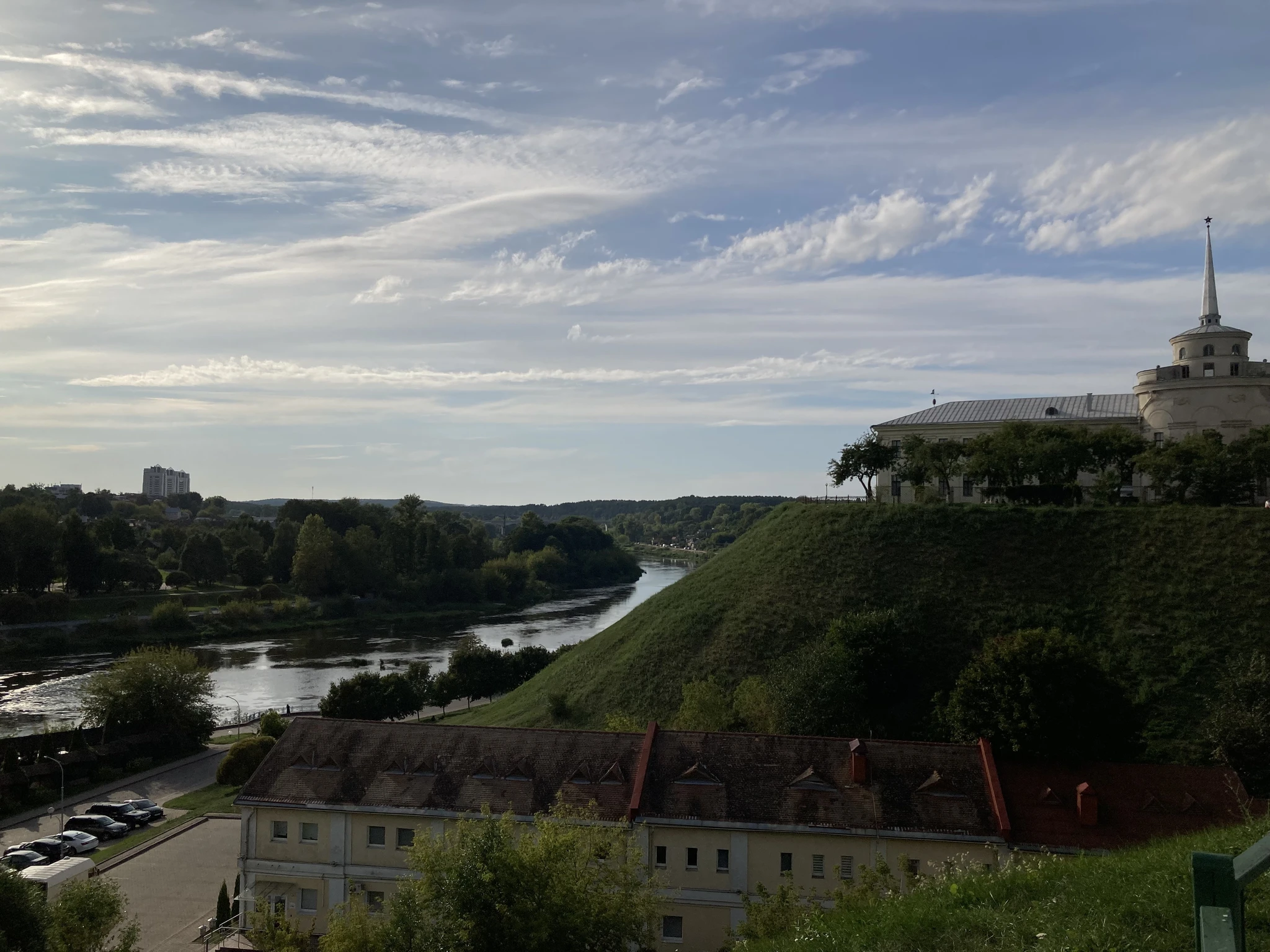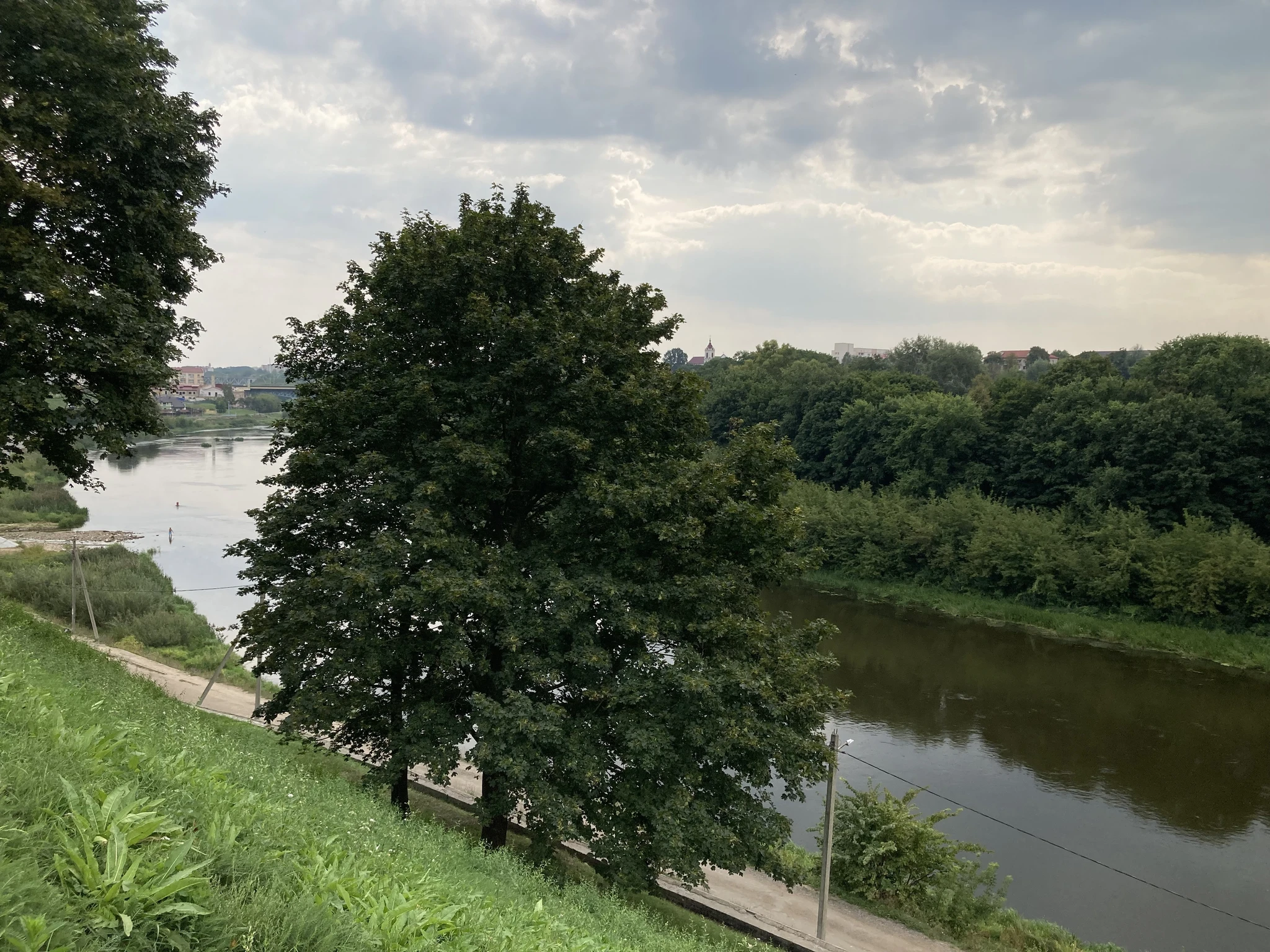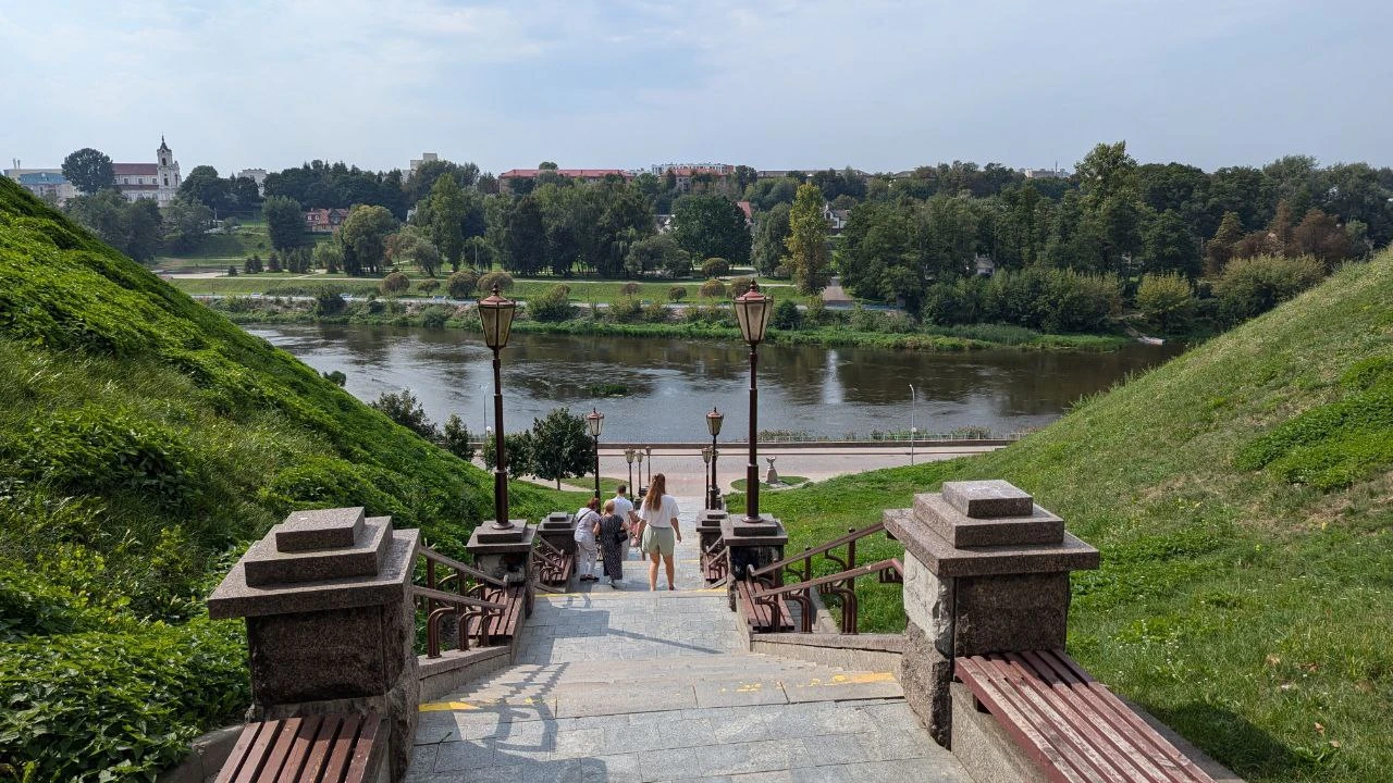 В Старом Замке на экскурсии были в прошлый раз поэтому мы с удовольствием устроились на скамейке в верхней части лестницы у замка и наслаждались видом на Неман.