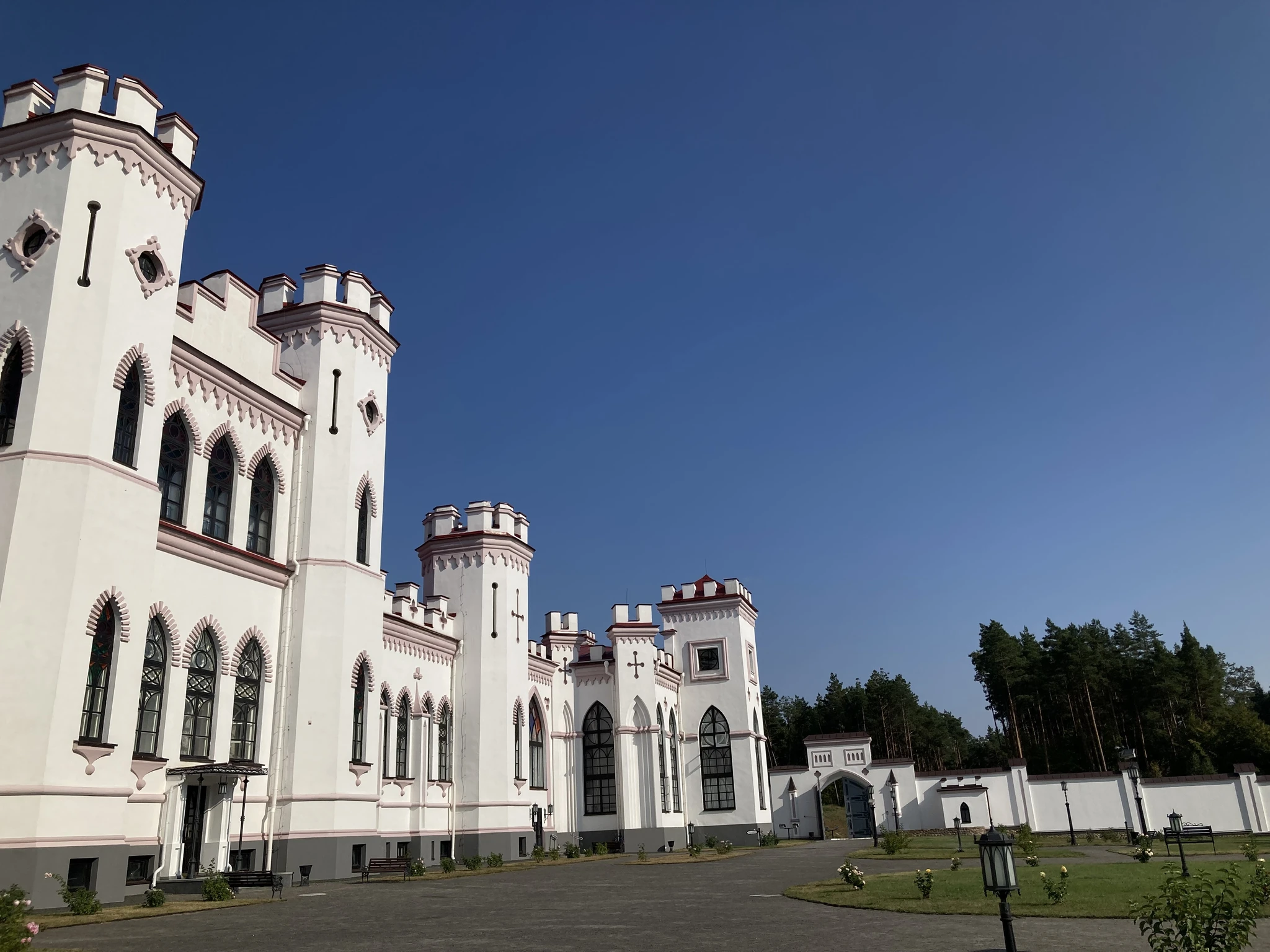 Наоборот, подъезжая для к нему видишь на возвышенности романтичный и величественный дворец, как из сказки про рыцарей и принцев. Построенный в стиле английской неоготики, что является редкостью для Беларуси.