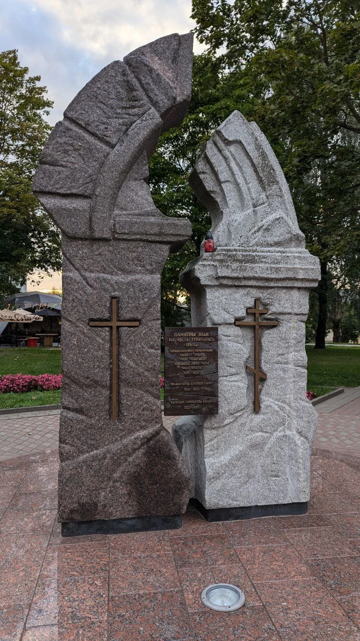 Здесь же напротив сквера находятся два больших красивых храма: католический костёл Пресвятой Троицы и православная церковь Святых апостолов Петра и Павла.
