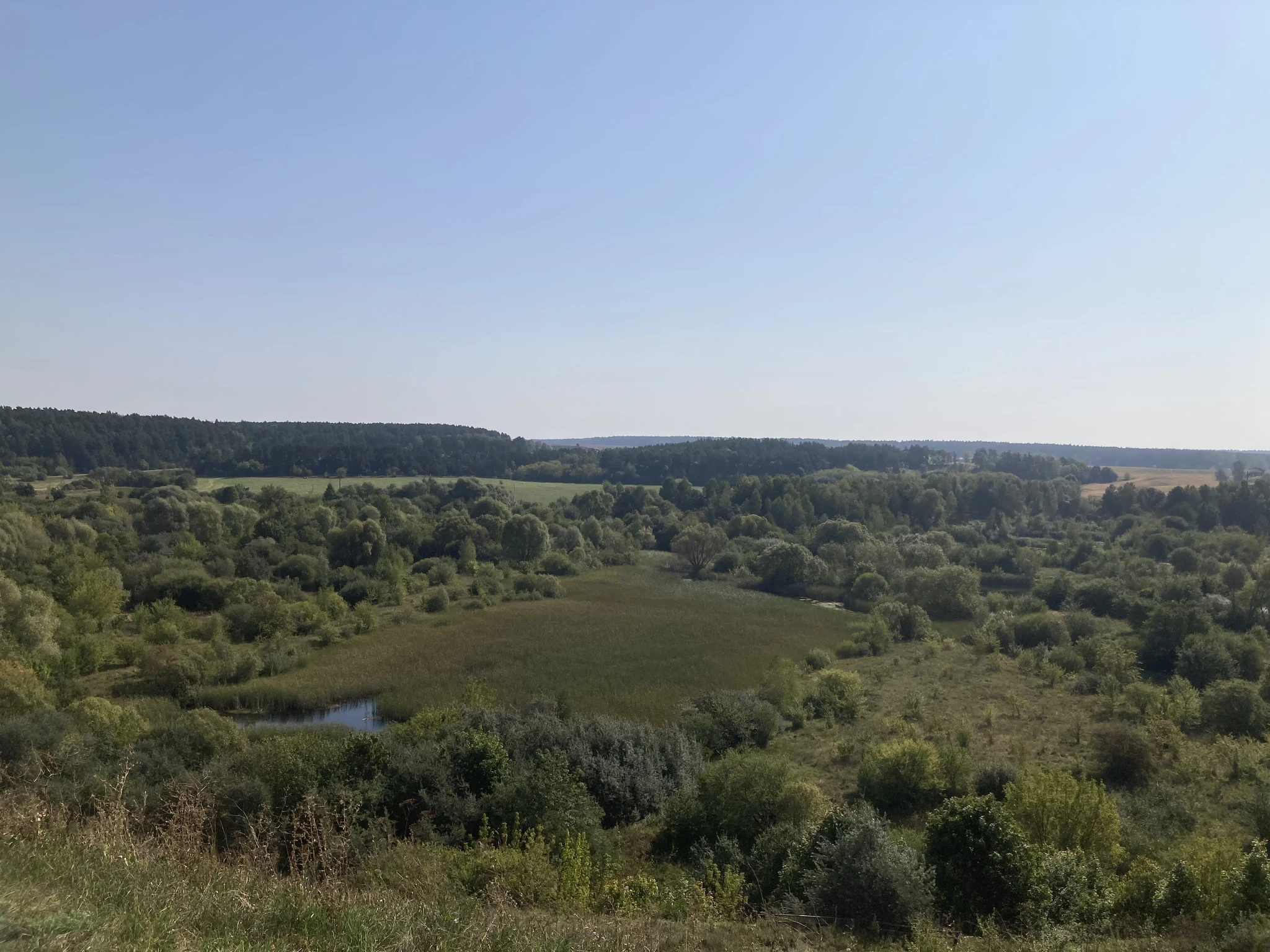 За усадьбой дорога к озерам. Мы пошли разведать обстановку, хотели подойти к озеру, но там дикие берега, никакой цивилизации. Плюнули, развернулись и уже прямиком поехали в Пинск уже без остановок.