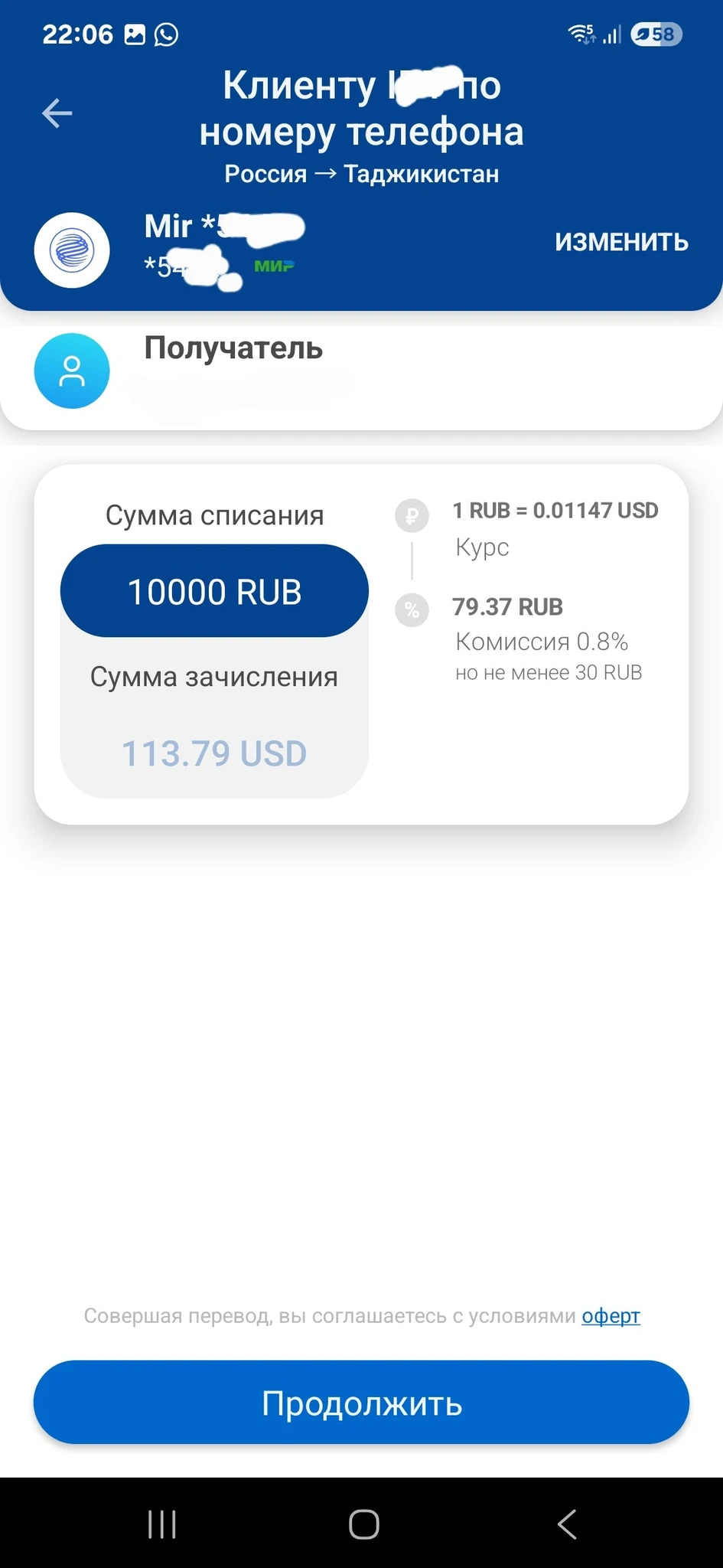 Таджикскую через приложение Озон, к которому привязана карта Мир (банк неважен, хоть сбер, хоть любой другой) например если я сейчас переведу 10 тыс, то на счёт упадёт 113,79 $.