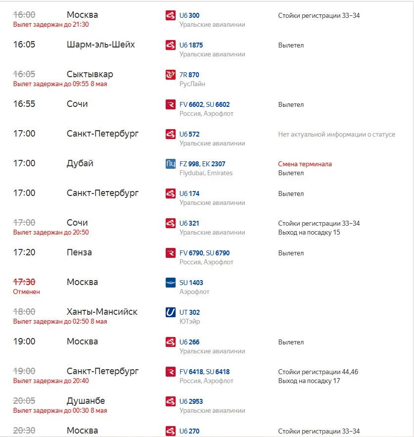 Я конечно не очень люблю Уралы, но сегодня мне понравилось, как они сработали. Дочь сидела всю ночь в аэропорту. Горячее питание дали, воды дали. На первый отмененный рейс вышли предложили сдать билеты или переоформить. На второй отмененный рейс (дочкин) также. Возник вопрос по сдаче билета, сразу дозвонилась, мне ответили. Единственное, что не понравилось, они один рейс на Екатеринбург оставили, остальные отменили или перенесли далеко.