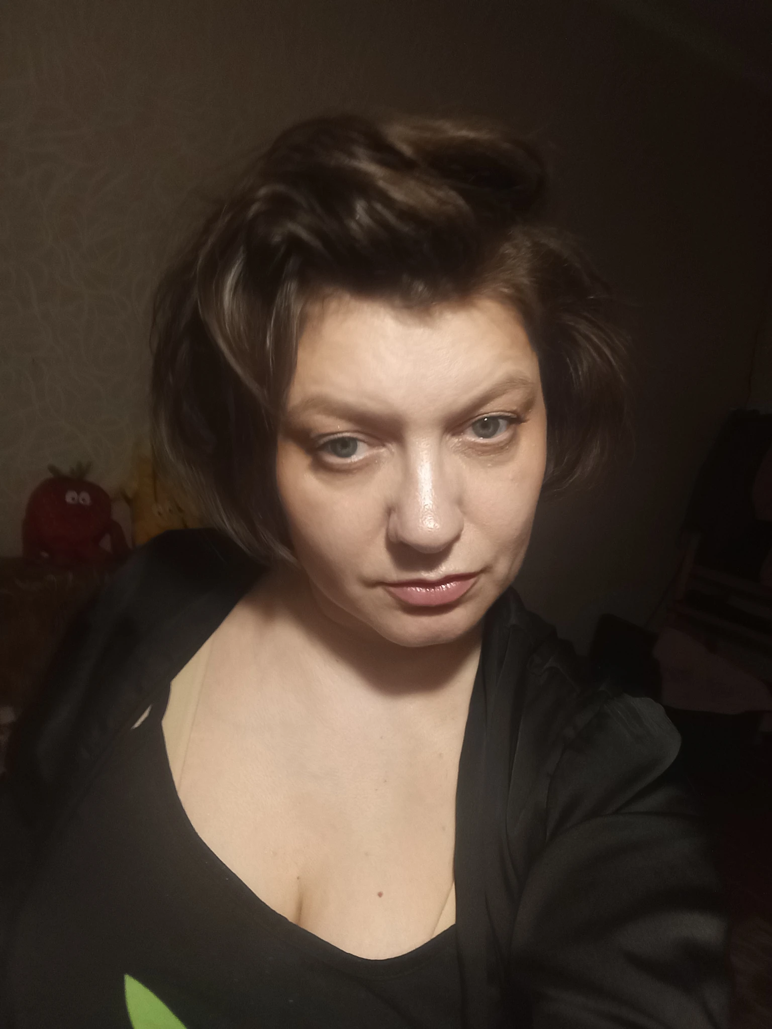 С макияжем лучше. Согласна, что более светлый тон волос и меньше темного у лица будут освежать вас.