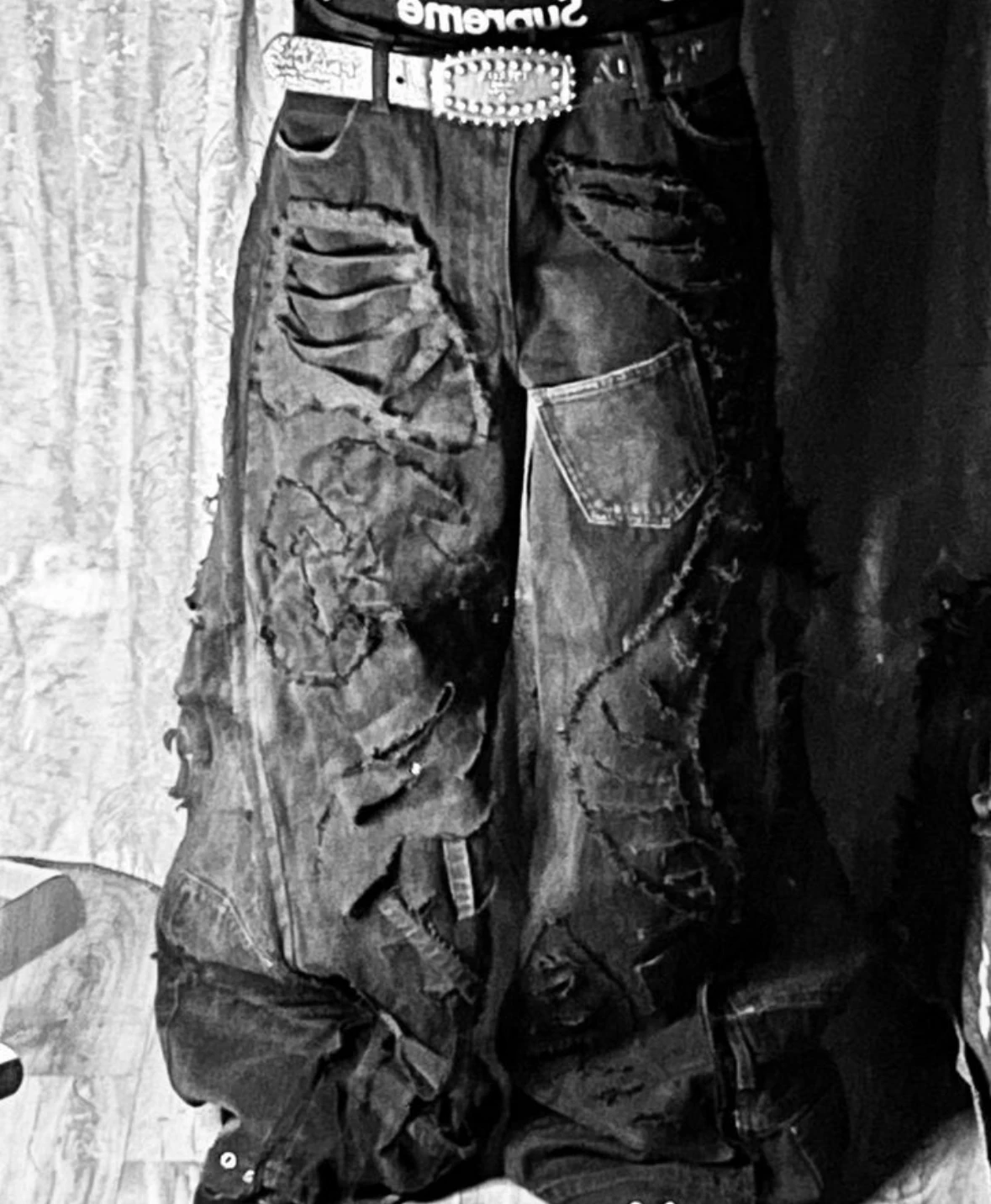 Сын 22 года, одевается как неформал. Из эпатажного, считаю, ботинки баленсиага (подделка) очень тяжелее. И джинсы такие на заказ. Сын ростом 2 метра, чёрные длинные волосы и кожаная куртка