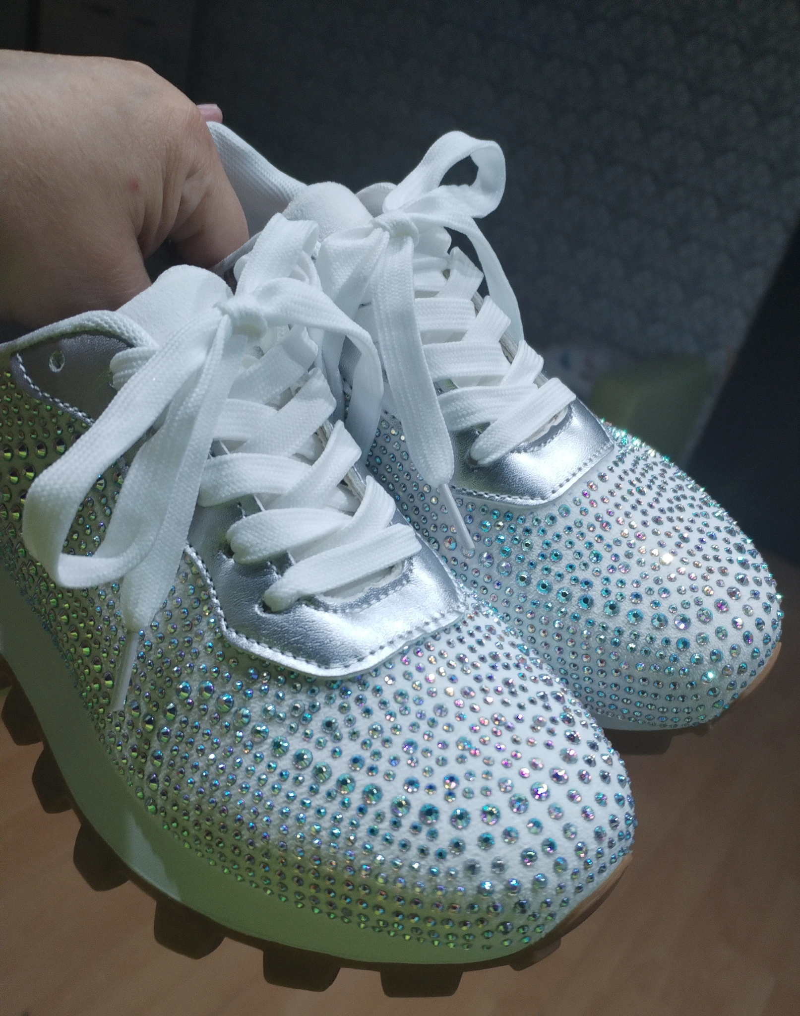 Многочисленные футболки со стразами, мультяшными принтами, шорты со стразами, кроссовки со стразами.