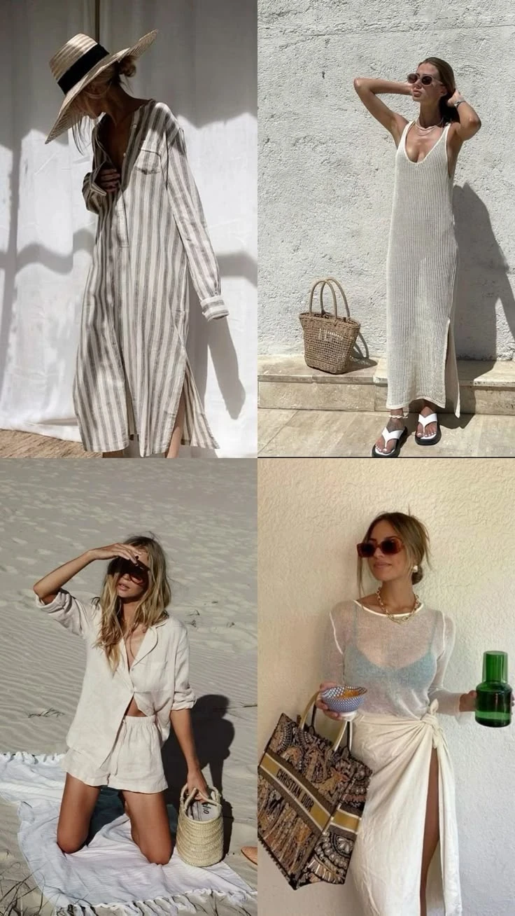 Вот примеры стильного пляжного гардероба на мой взгляд. Но в любом случае, надо смотреть на свои предпочтения, типаж и фигуру.